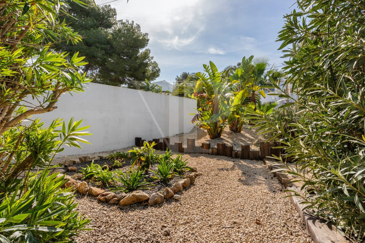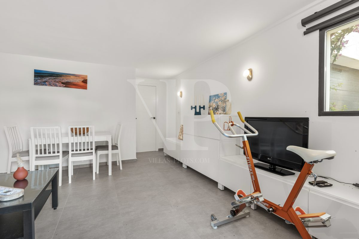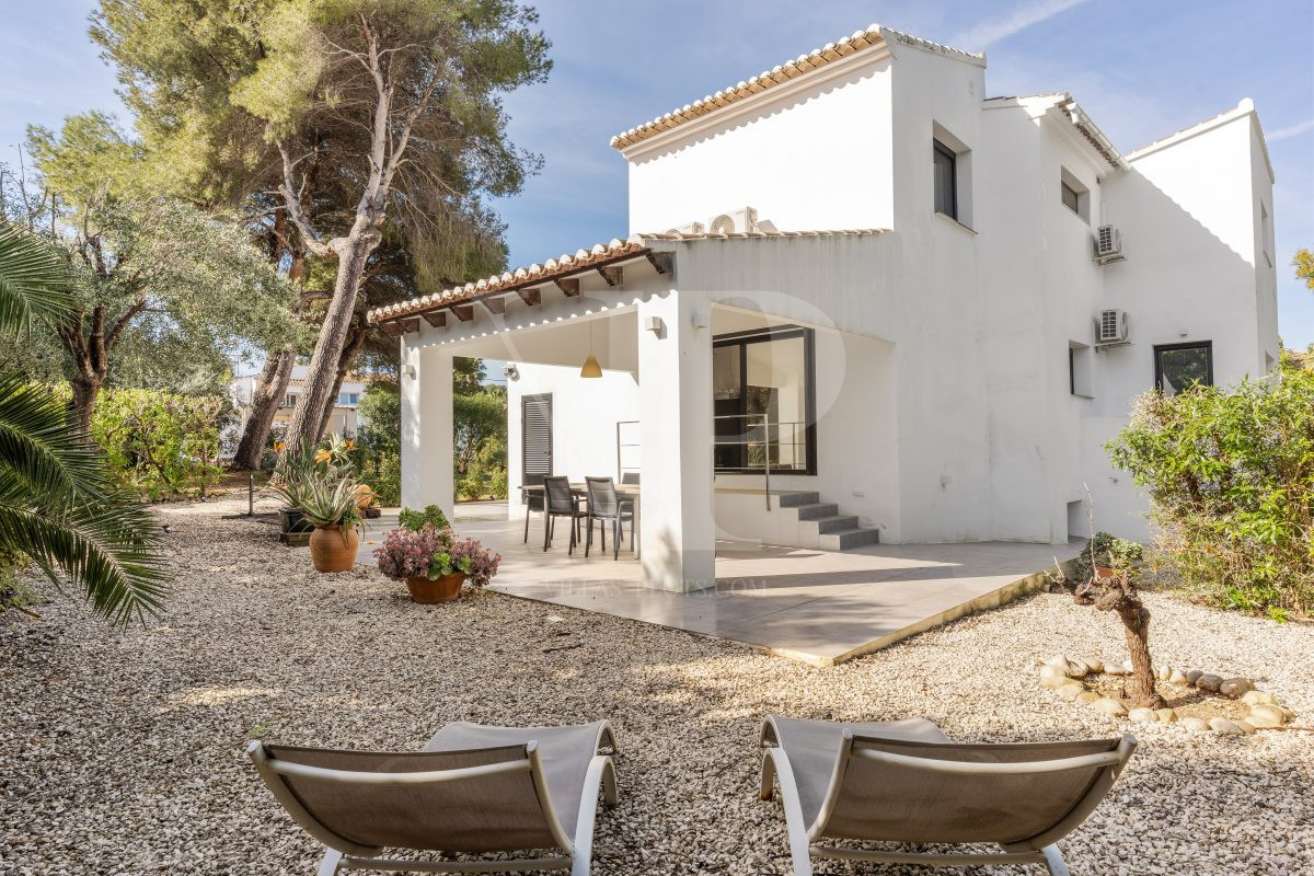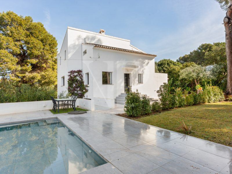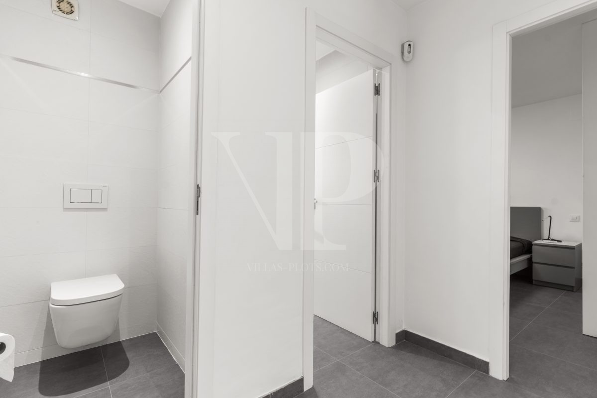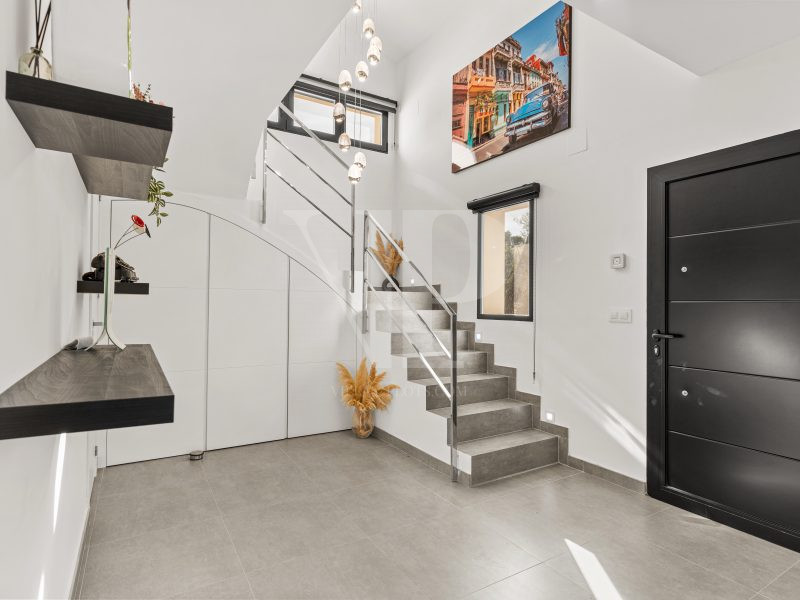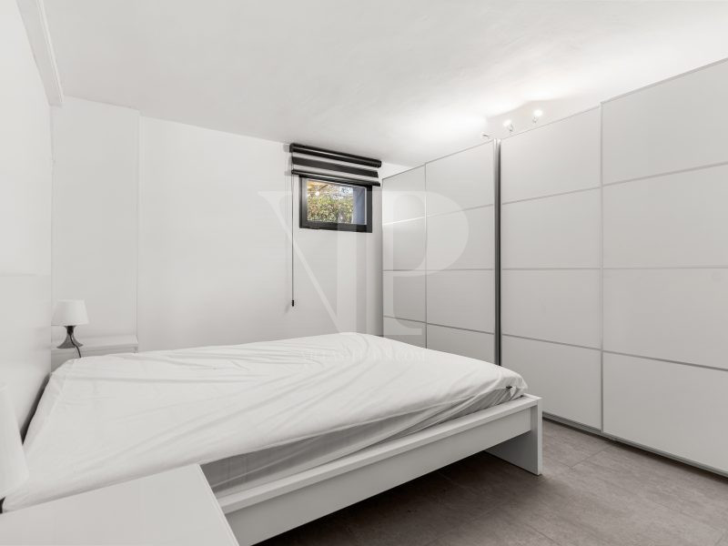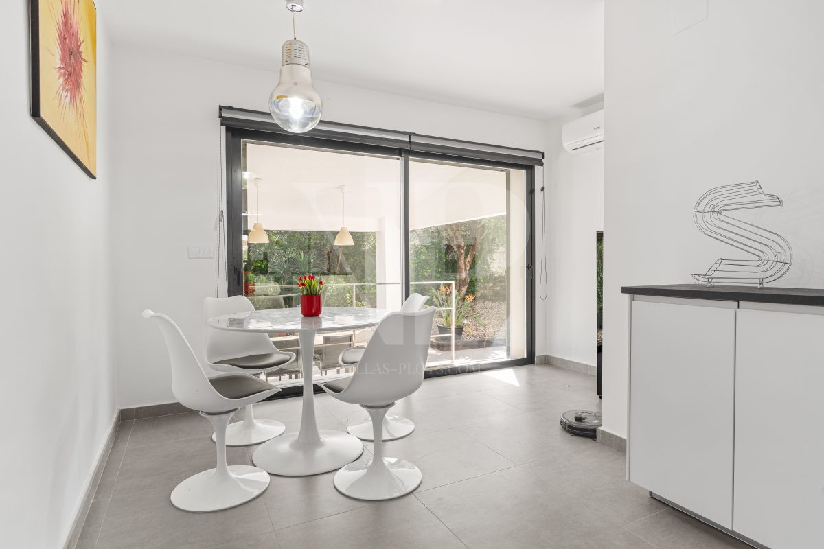 The villa has been completely renovated in a contemporary style and comprises a large entrance hall leading to a living room with open fire, a spacious dining room and a huge open-plan kitchen.