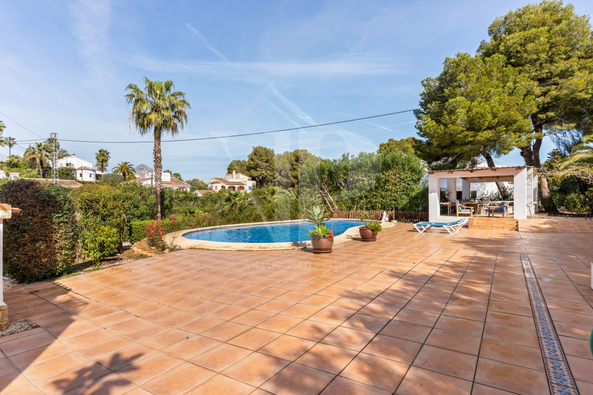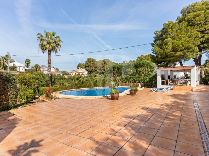 Superb swimming pool surrounded by large terrace areas and a large covered terrace area.