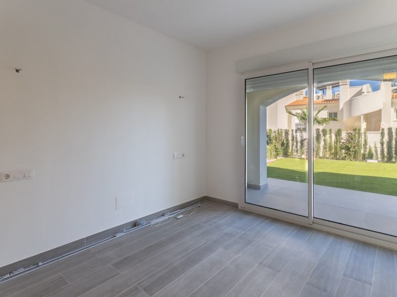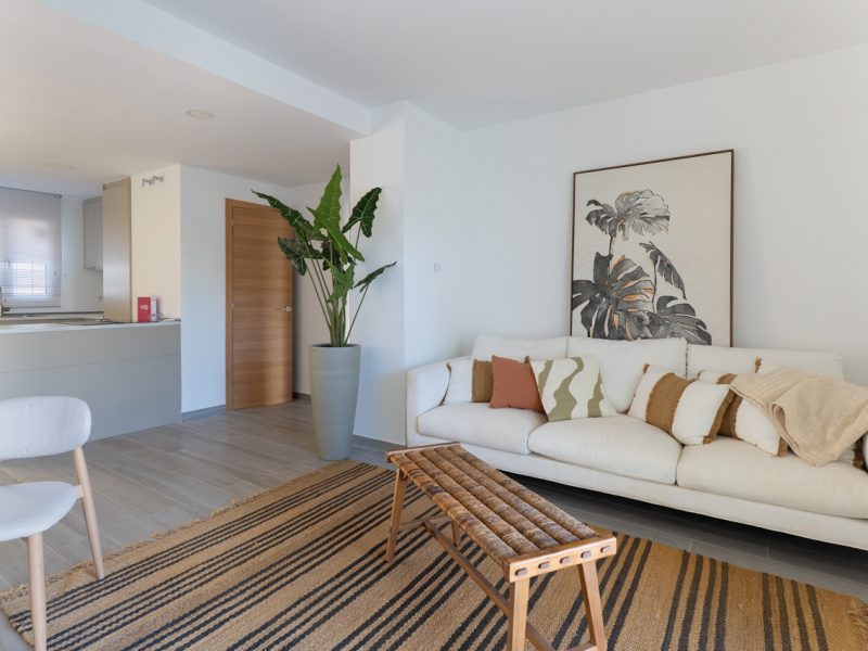 Ground floor apartment integrated into a modern, Mediterranean-style development, distinguished by its functional and meticulous design. The property comprises two bedrooms with built-in wardrobes that optimize storage space, a full bathroom, and a living area that combines the living room and open-plan kitchen, promoting spaciousness and a flow of movement.