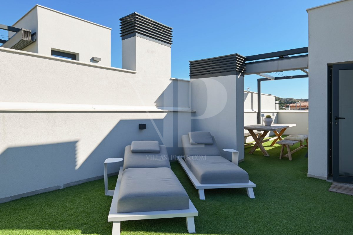 * Terraces: a covered terrace of 10 m² and a spectacular solarium of 82 m² with jacuzzi and pergola.