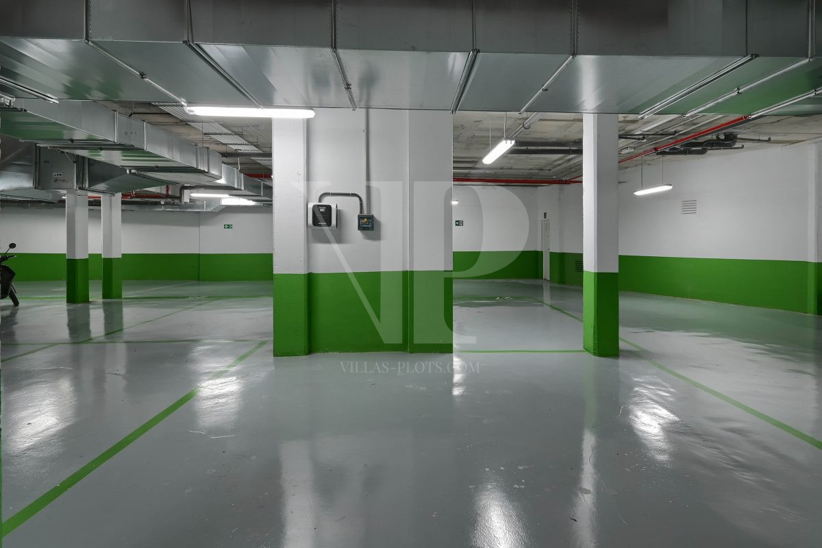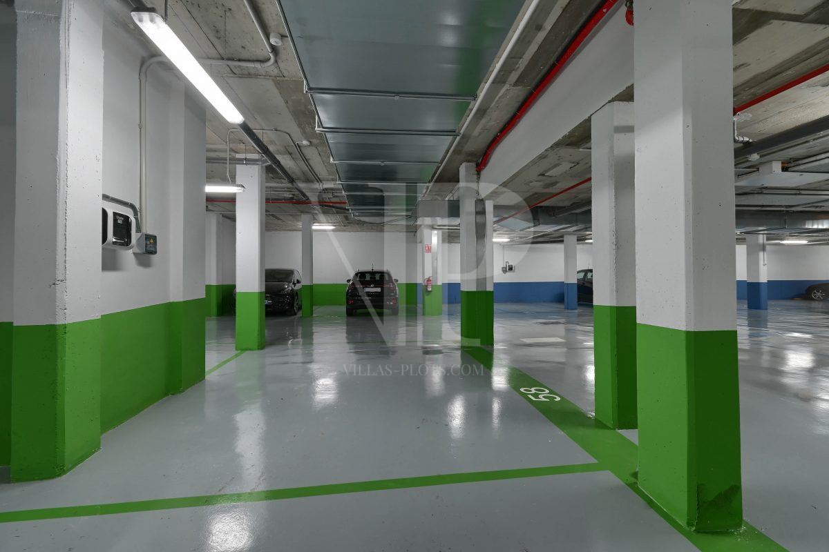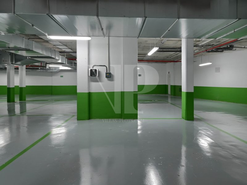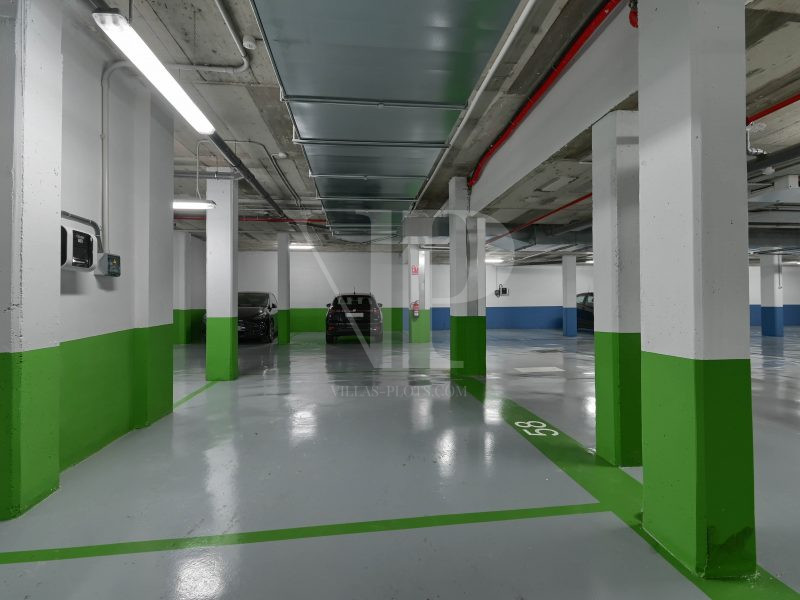 * Private parking space with car charging point in parking garage.