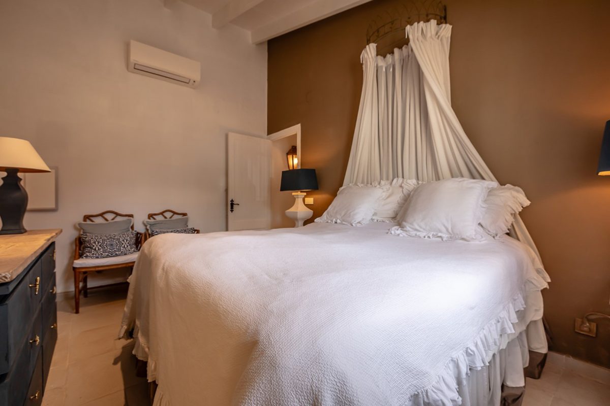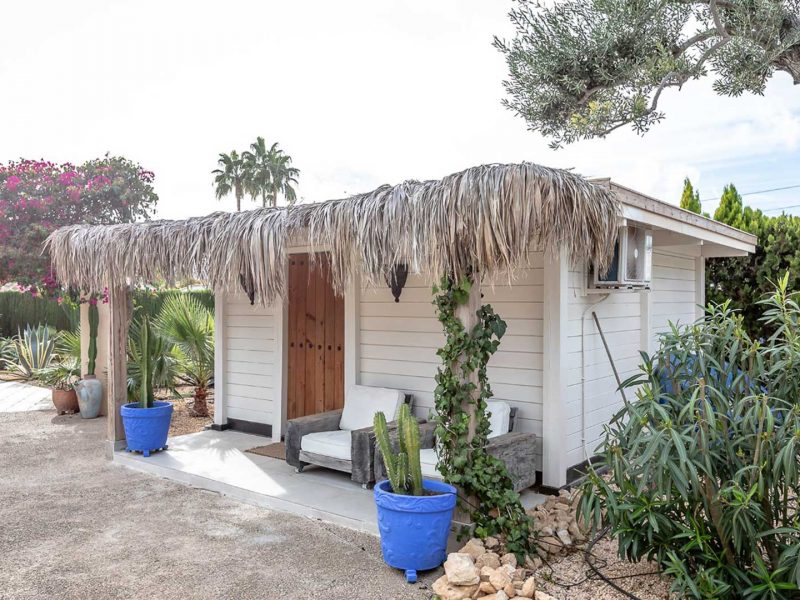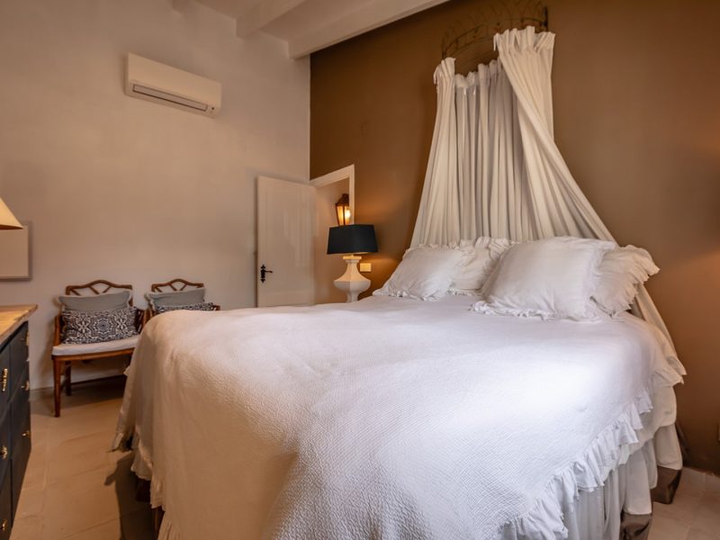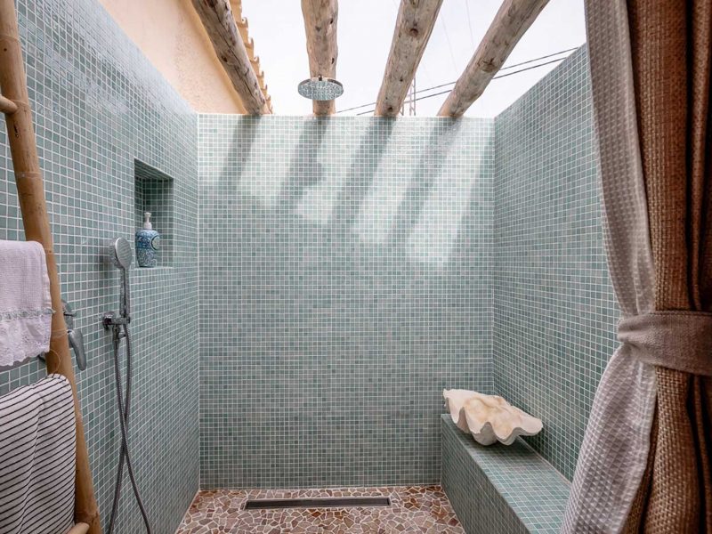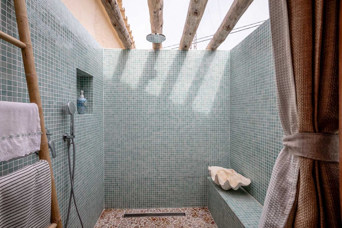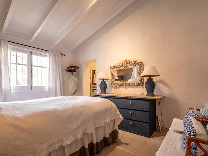 The two bedrooms, both spacious and air-conditioned, offer direct access to the living area, reinforcing the feeling of spaciousness and connection to the outside. The master bedroom also has a large and comfortable dressing room. The interior is completed by a modern bathroom, a guest toilet, and outside, an outdoor shower ideal for cooling off after a day at the pool.