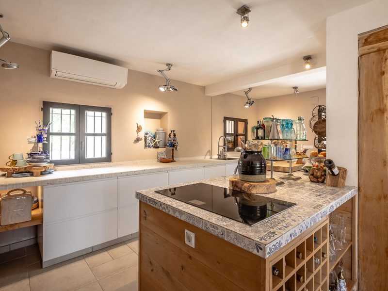With a surface area of 167 m², the villa has been designed to offer a comfortable and functional lifestyle. Its interior combines the rustic charm of wooden details with modern and bright finishes, creating a warm and welcoming atmosphere. The spacious living room, equipped with air conditioning, integrates perfectly with the open-plan kitchen, a real dream for food lovers, equipped with state-of-the-art appliances and an open plan design that invites you to share special moments.