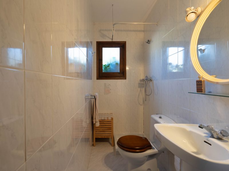 The main residence comprises a cosy living room with open-plan kitchen, a naya, and two double bedrooms sharing one bathroom. The guest apartment includes a living room with open kitchen, one bedroom and a bathroom. Both bedrooms in the main house are fitted with built-in wardrobes and recently installed air conditioning.