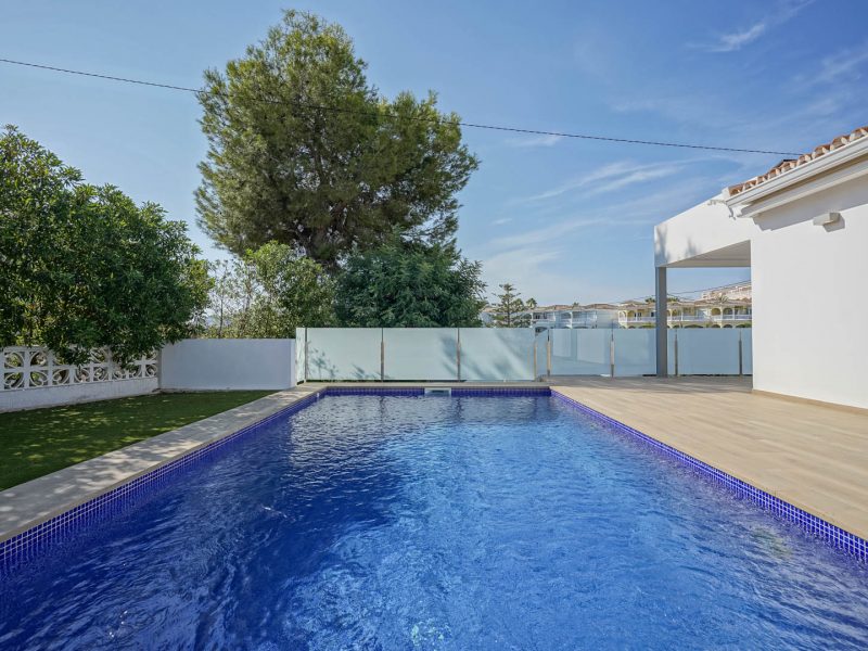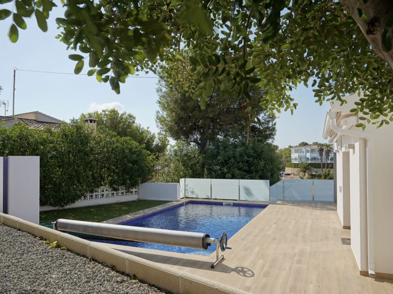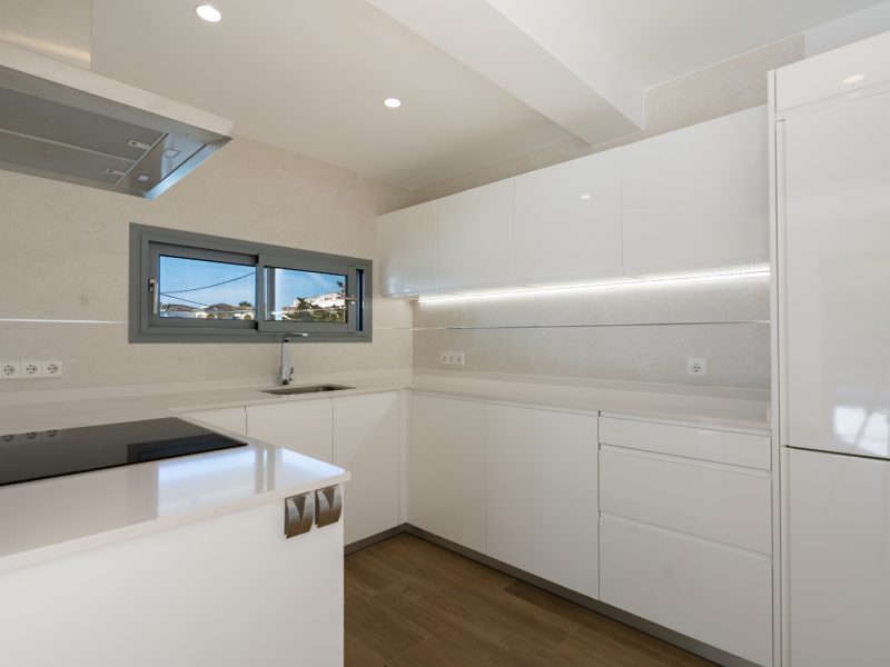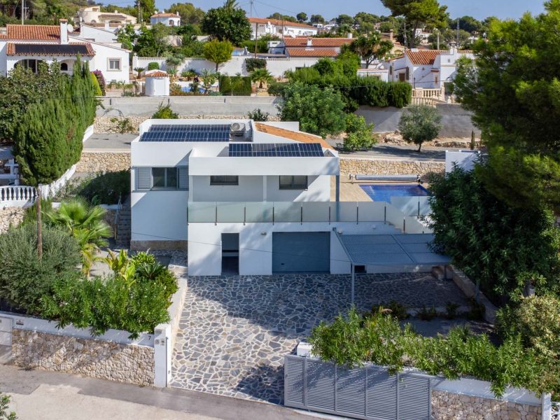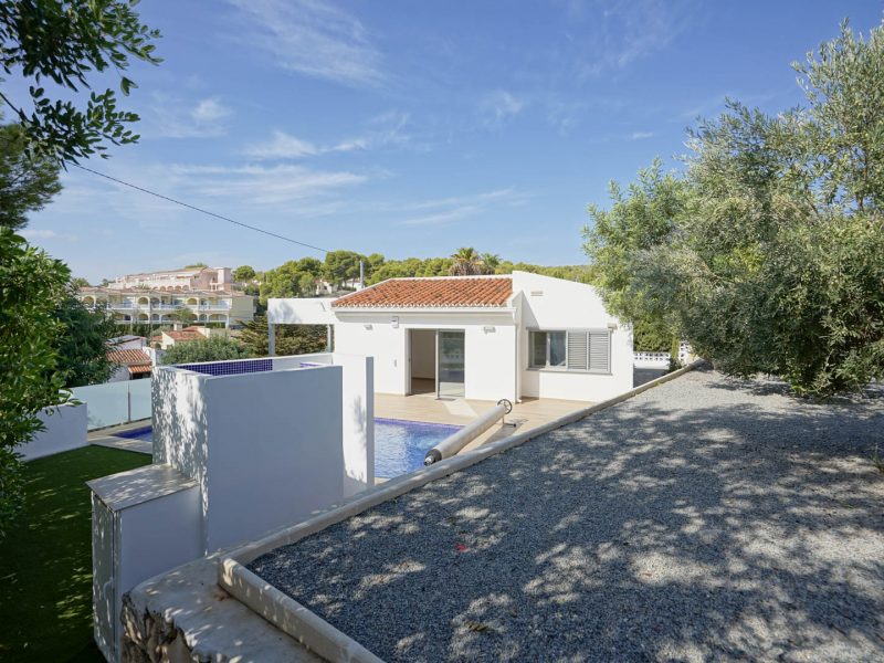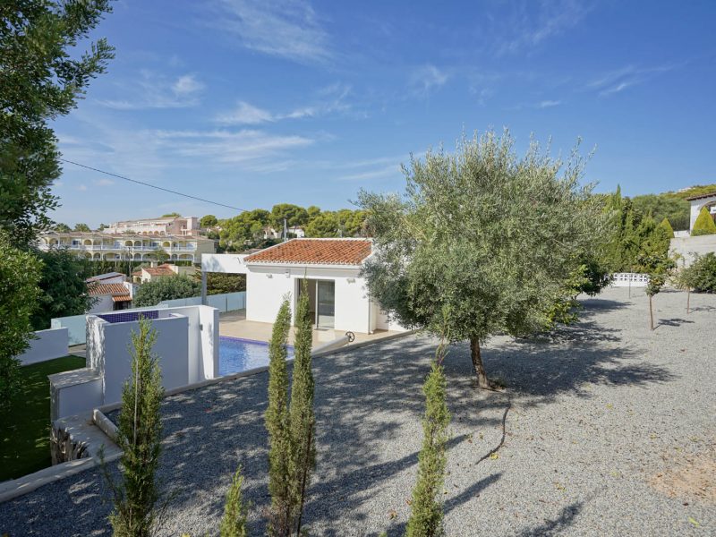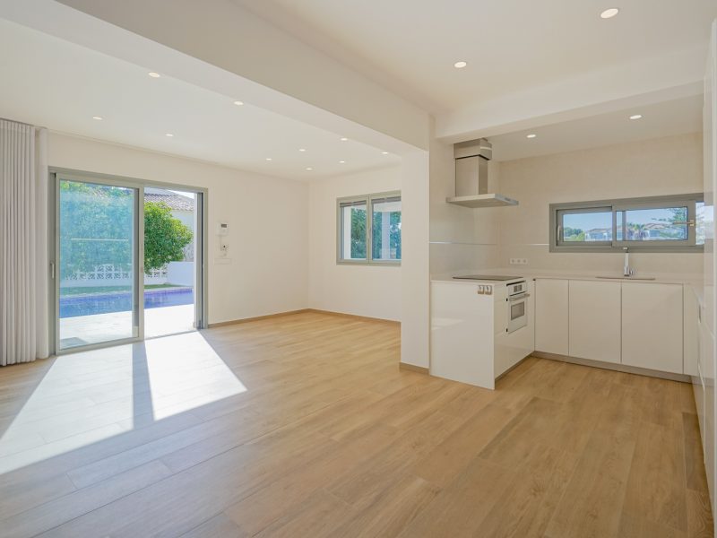 This ready-to-move-in villa is located in a dead-end street in the quiet urbanisation of La Fustera, just one kilometre from the beautiful coastline of Benissa. The property was completely renovated in 2023 and is spread over two floors.