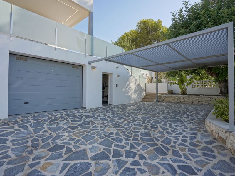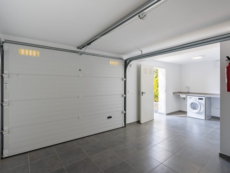 One floor below, at street level, there is a spacious garage with an adjoining laundry room, a technical room and a carport.