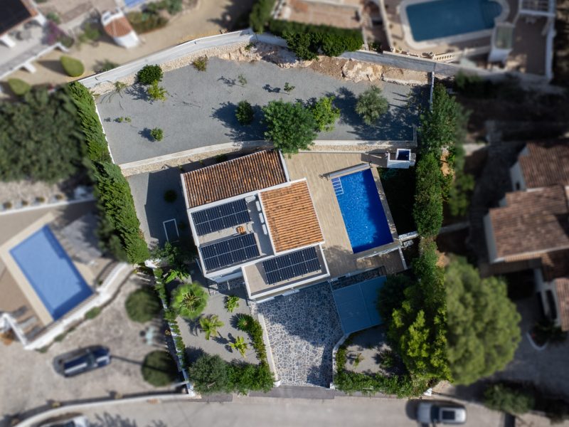 The villa is equipped with hot/cold air conditioning, built-in wardrobes, roller shutters, mosquito screens, fibre optic internet, a water filter system, 12 photovoltaic solar panels and an extensive alarm system with cameras and sensors.