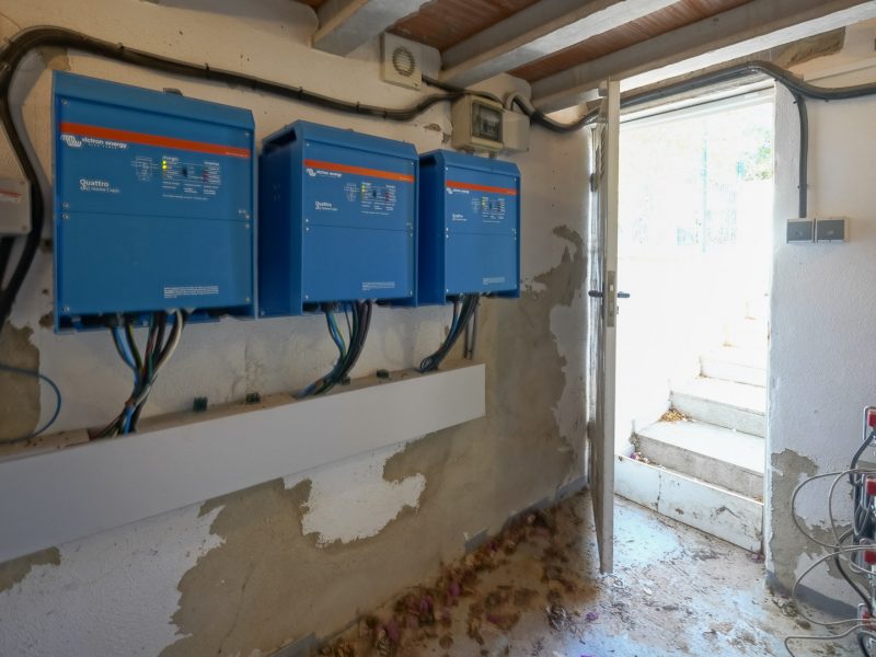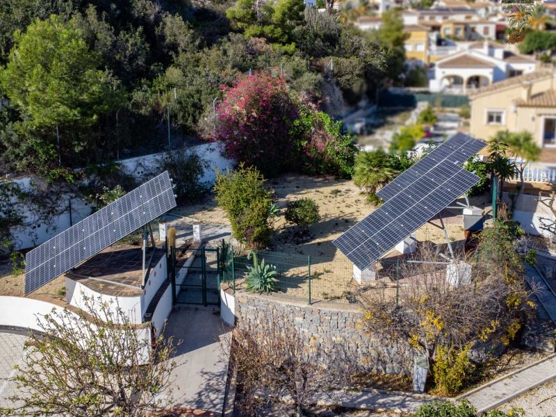 The home also features an advanced photovoltaic system consisting of three motorised solar towers that automatically track the sun, additional rooftop panels, four lithium battery towers and three Victron Energy inverters, generating a total of approximately 30 kW.