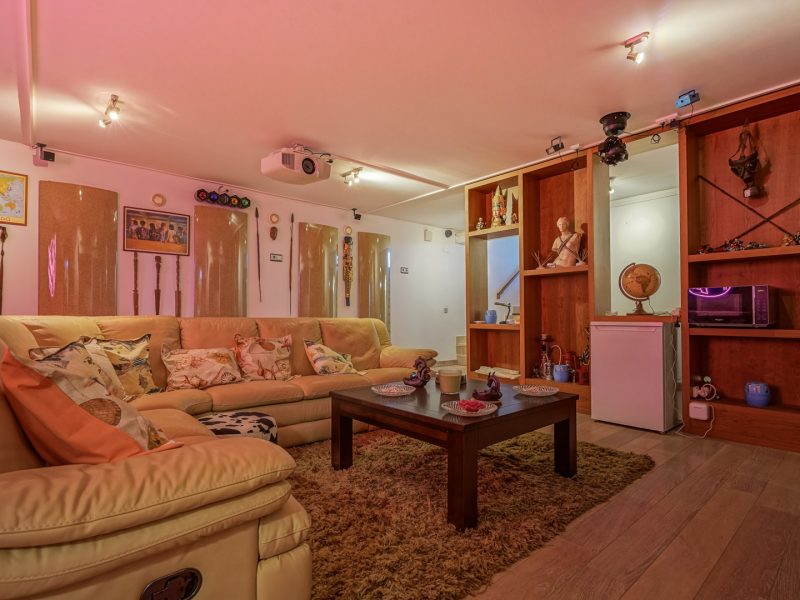The lower floor is dedicated to entertainment and includes a spectacular multimedia room equipped with a Bose 5.1 sound system, Denon amplifier, Canon 3D projector with glasses, electric projection screen, disco lighting and other features that turn it into a private recreational centre. A third bedroom, a gym (which could be transformed into a fourth bedroom), an exterior bathroom, a large garage and a storage room are also located on this floor.