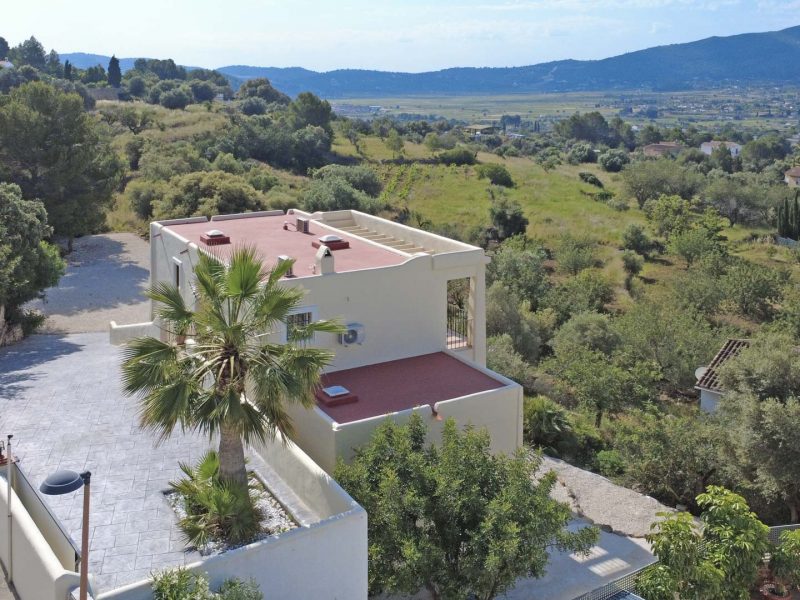 This fantastic villa is located at the end of a quiet cul-de-sac in the peaceful urbanization of Vall de Paraíso, just 1.5 km from the center of Jalón. The villa faces south and offers sweeping 180º panoramic views over the Jalón Valley and the surrounding mountains, including the Coll de Rates and the Sierra de Bernia.
