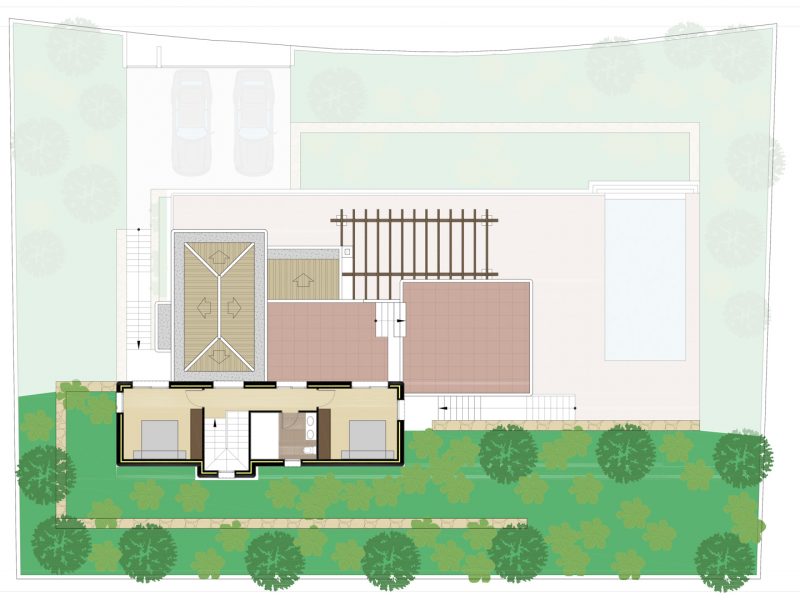 The villa features three spacious bedrooms, all with large windows that overlook the garden and allow plenty of natural light to enter, creating a bright and tranquil atmosphere. In addition, there are two modern bathrooms finished with high-quality materials and a functional, elegant design.