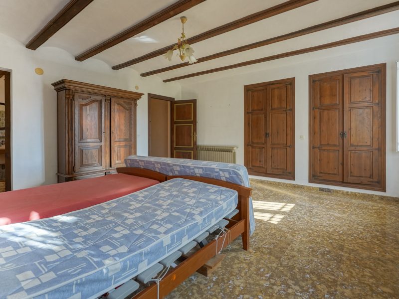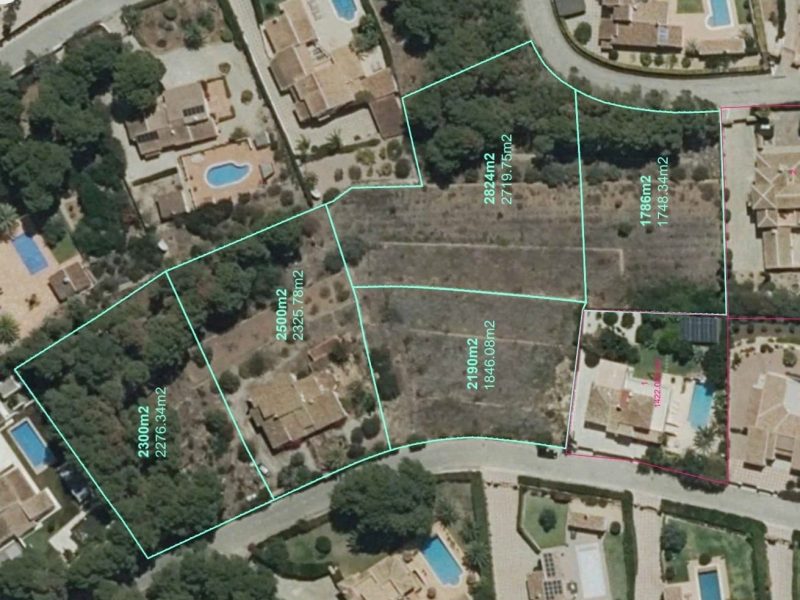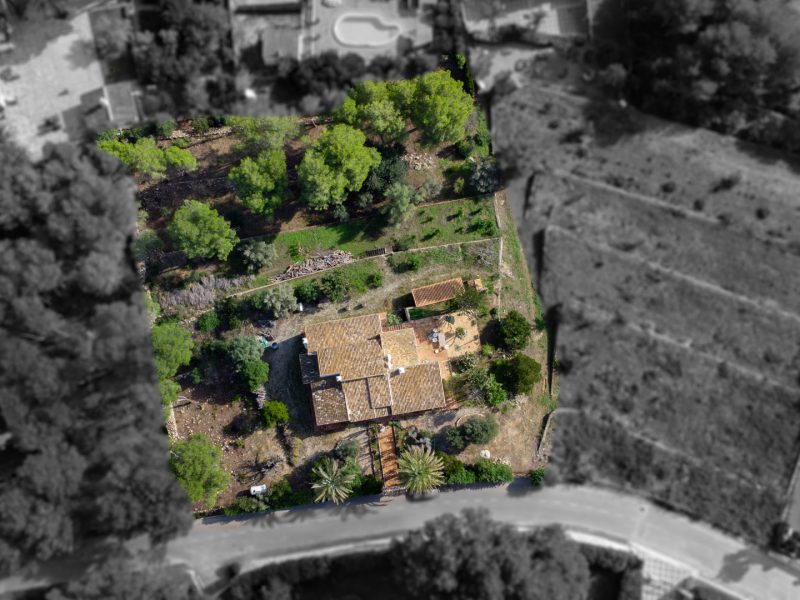 This traditional villa is located in the quiet, exclusive residential area of La Lluca and is situated on a plot of 2325 m2 with a building coëfficiënt of 0,30m2/m2. This means the current villa can be expanded up to 697 m2. In addition, there is the possibility of acquiring 4 adjacent urbanised building plots with sizes ranging from 1748 m2 to 2719 m2 and all with a building coëfficiënt of 0,30m2/m2 as well. There is the possibility of creating one additional building plot by dividing the three southern plots into four plots.