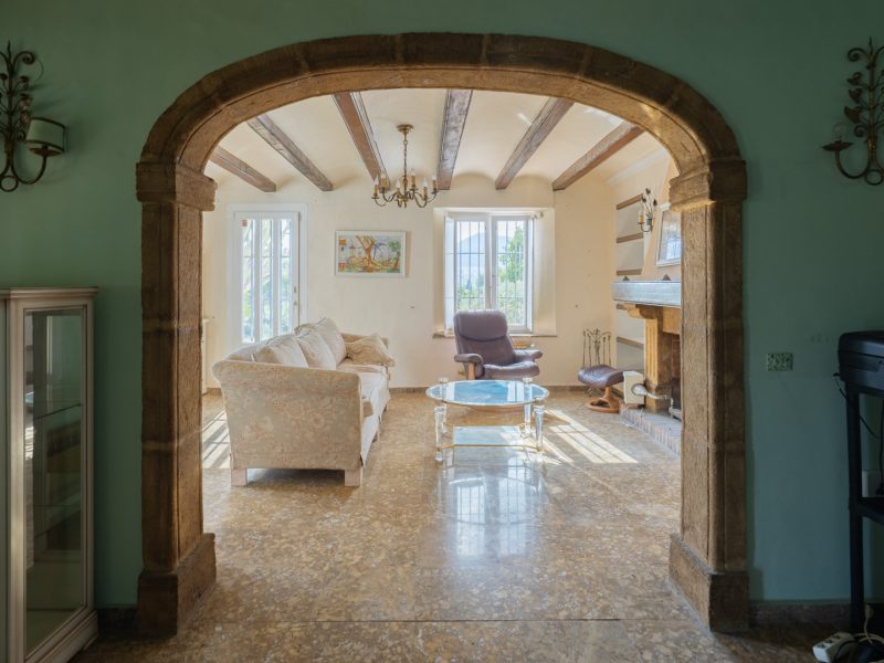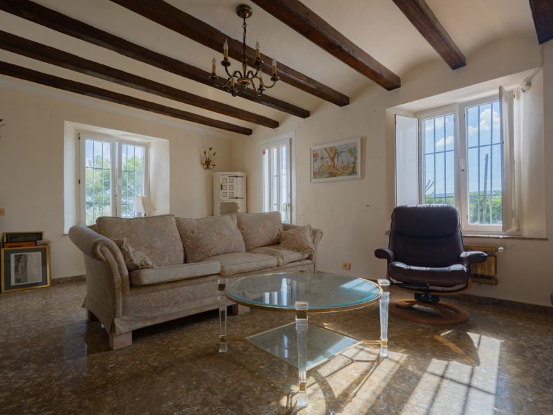 The villa is spread over one floor and also has a semi-basement where there is the possibility of creating a spacious guest accommodation. The main floor consists of an entrance hall, a living room with a fireplace, a dining room, a kitchen, a spacious naya with a fireplace, a master bedroom with an en-suite bathroom and two double bedrooms with a shared bathroom. The villa is characterised by its traditional features, including the use of tosca stone, solid wooden doors and arches. The plot features several centuries-old olive trees, cacti, palm trees, fruit trees and pine trees.