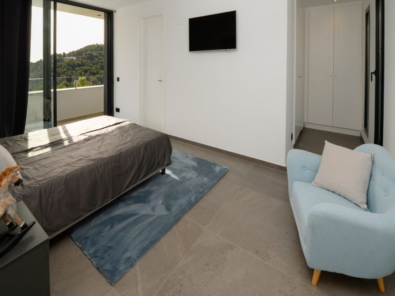 This stylish modern villa is located in an excellent position within the highly sought-after Tosalet 5 urbanisation in Jávea and enjoys open views over the green hills towards the sea. On clear days, the view even extends as far as Ibiza on the horizon.