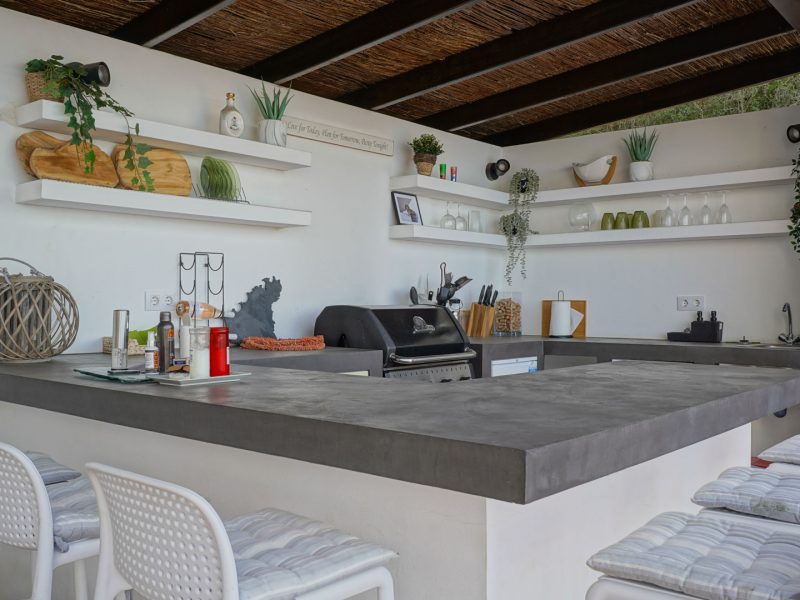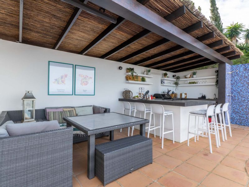 The outdoor area has been designed to make the most of the Mediterranean climate: a private swimming pool surrounded by covered and uncovered terraces, a barbecue with a summer kitchen, a jacuzzi, a storage room, and a garage complete the amenities of this magnificent villa. It also features hot/cold air conditioning, a laundry room, and a parking area.