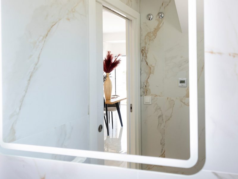 Upstairs, there are two en-suite bedrooms, each with its own bathroom and access to two terraces offering unobstructed views.