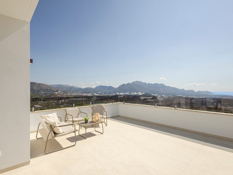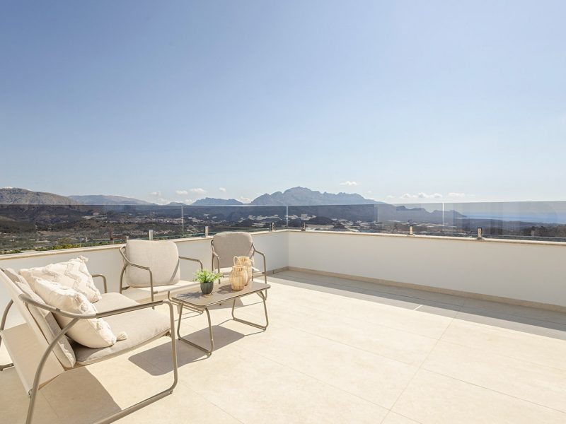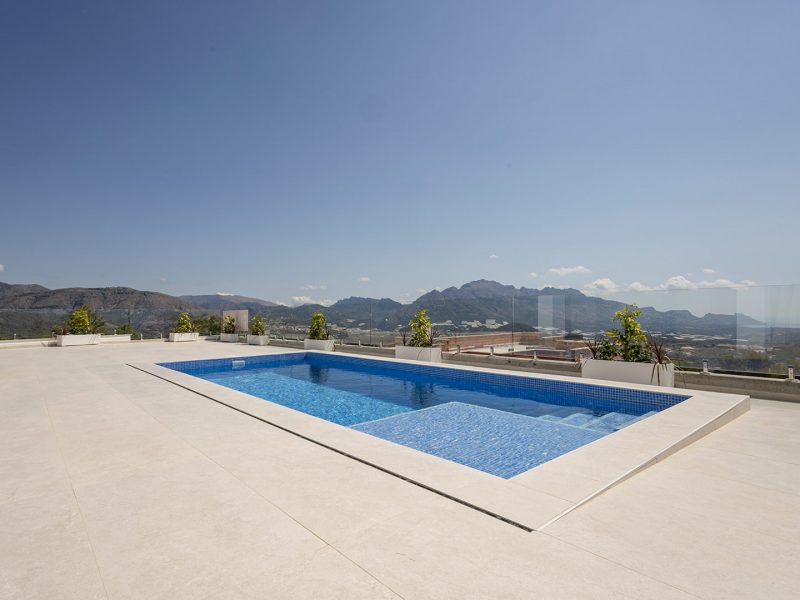 Modern detached villa with stunning sea and mountain views.