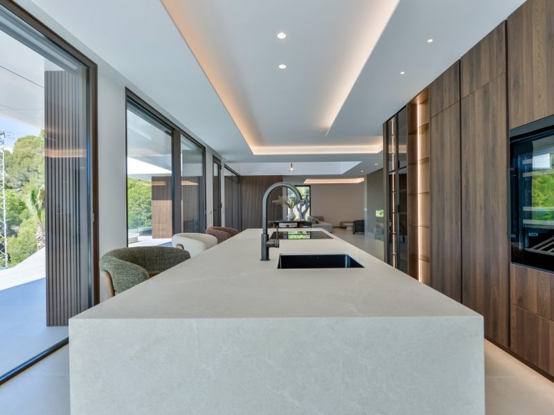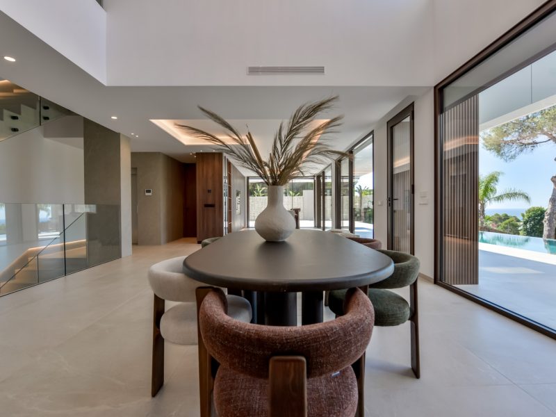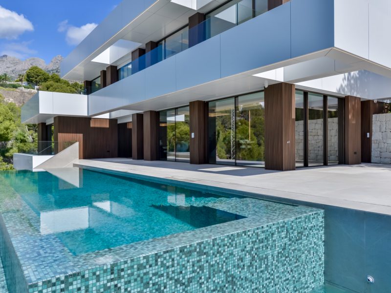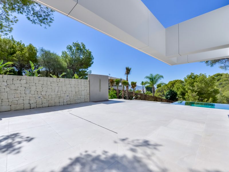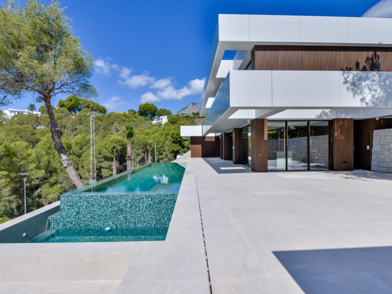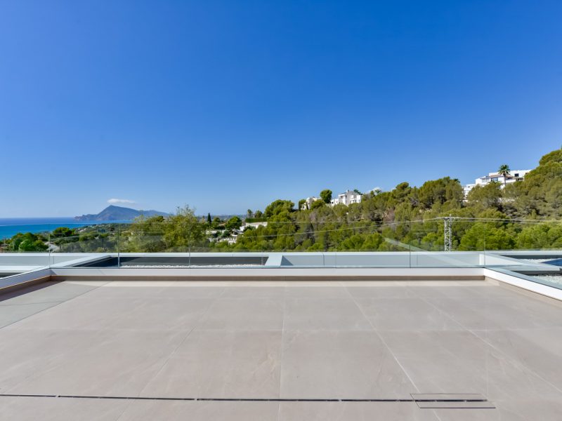 This fantastic new build villa is situated on a spacious 1420 m2 plot at the end of a quiet street in one of Altea’s exclusive urbanisations. The plot is gently sloping, guaranteeing wide views both of the beautiful coastline and the mountains behind.
