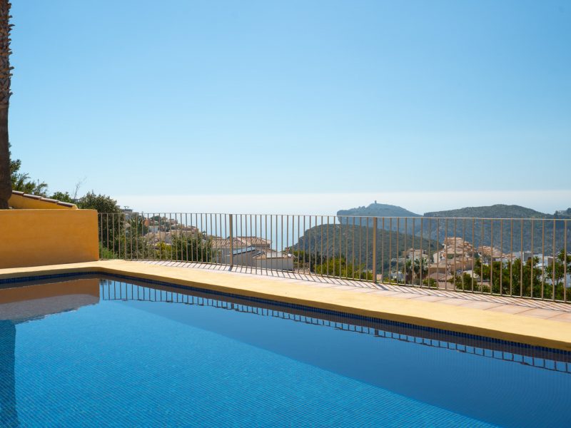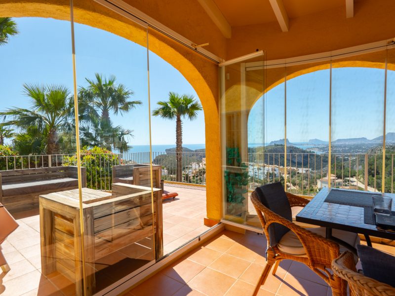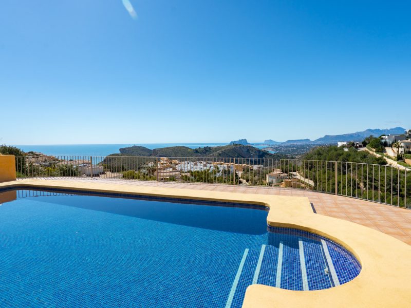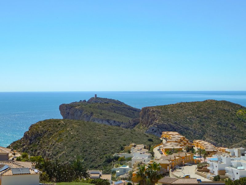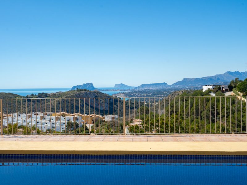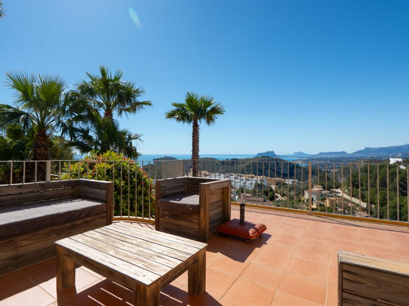This charming villa is located in a cul-de-sac in the peaceful urbanisation of Cumbre del Sol. The property enjoys panoramic views over the sea, Cap d’Or in Moraira, the coastline from Benissa to Calpe, the Sierra Helada in Benidorm and the impressive Sierra de Bernia mountain range inland.