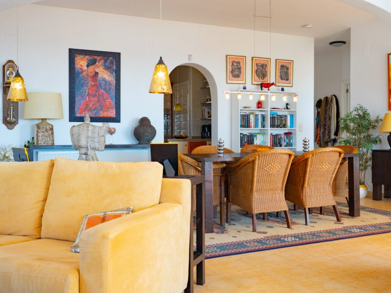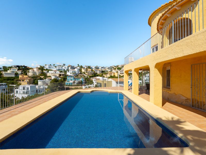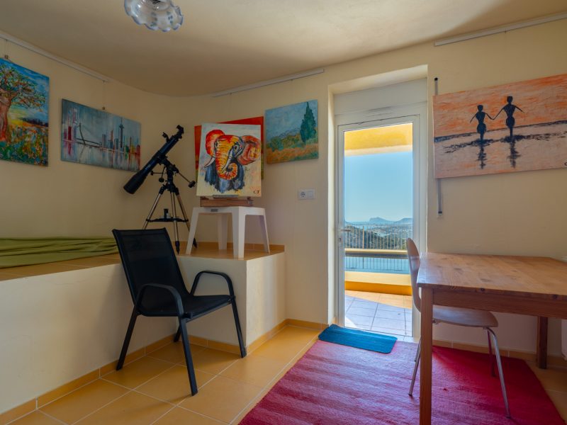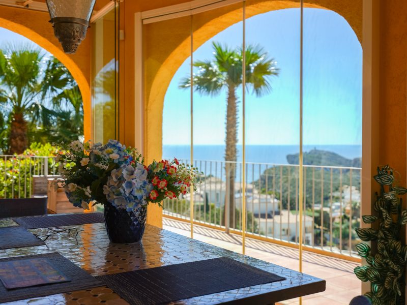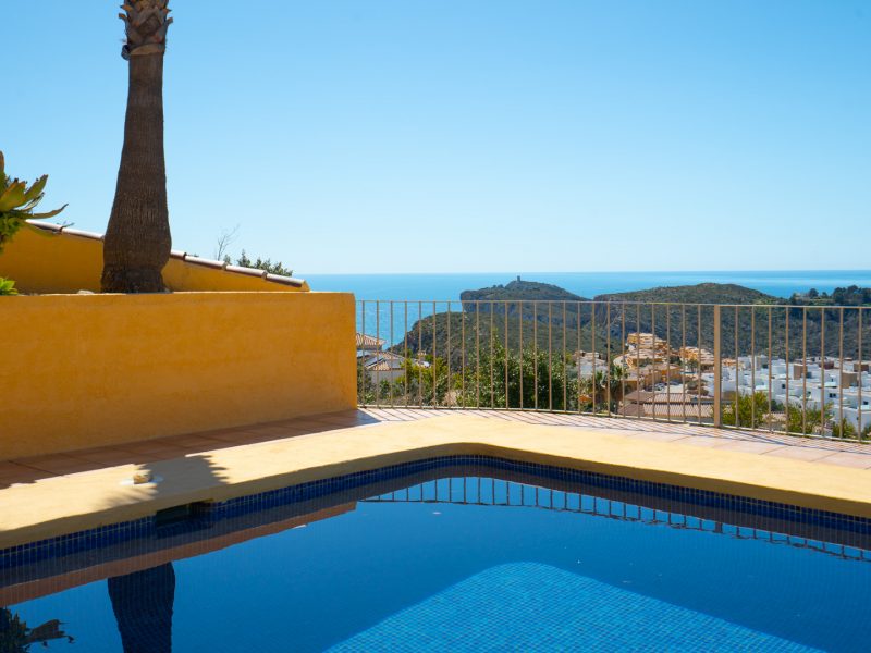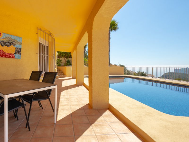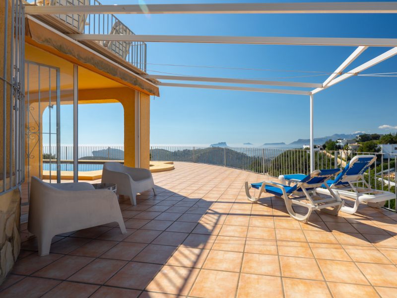 This charming villa is located in a cul-de-sac in the peaceful urbanisation of Cumbre del Sol. The property enjoys panoramic views over the sea, Cap d’Or in Moraira, the coastline from Benissa to Calpe, the Sierra Helada in Benidorm and the impressive Sierra de Bernia mountain range inland.