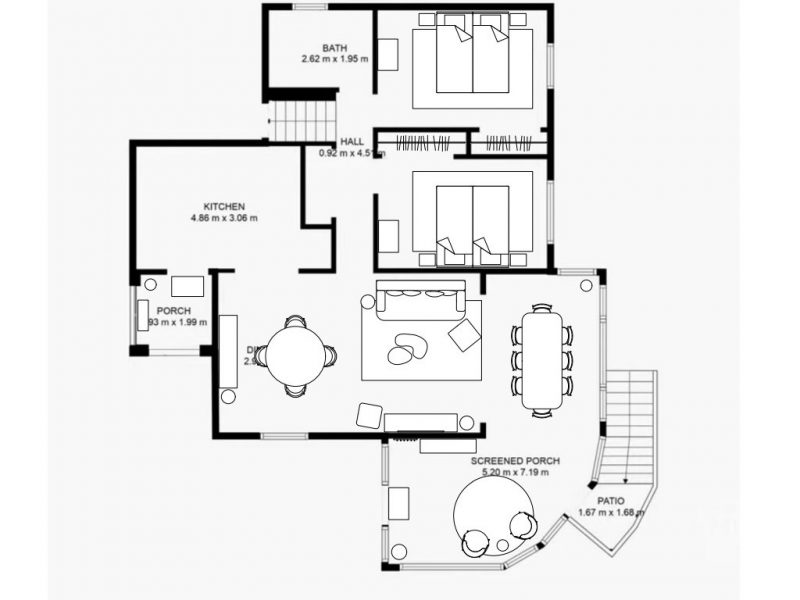 The ground floor features a spacious, fully glazed naya, an ideal place to have breakfast every day with stunning sea views. From the naya, you enter the living room with an adjoining semi-open kitchen. For extra comfort, the kitchen has direct access to the outdoor area. This floor also has two spacious double bedrooms and a bathroom. The semi-basement also contains a spacious storage room.