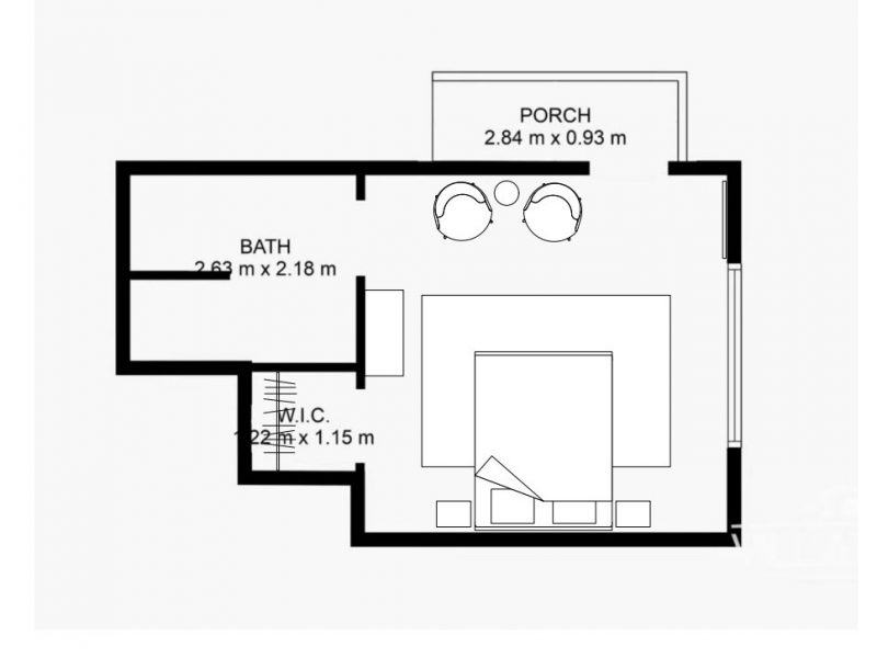 On the semi-basement floor, there is a separate guest house with its own entrance, consisting of a spacious double bedroom and a bathroom.