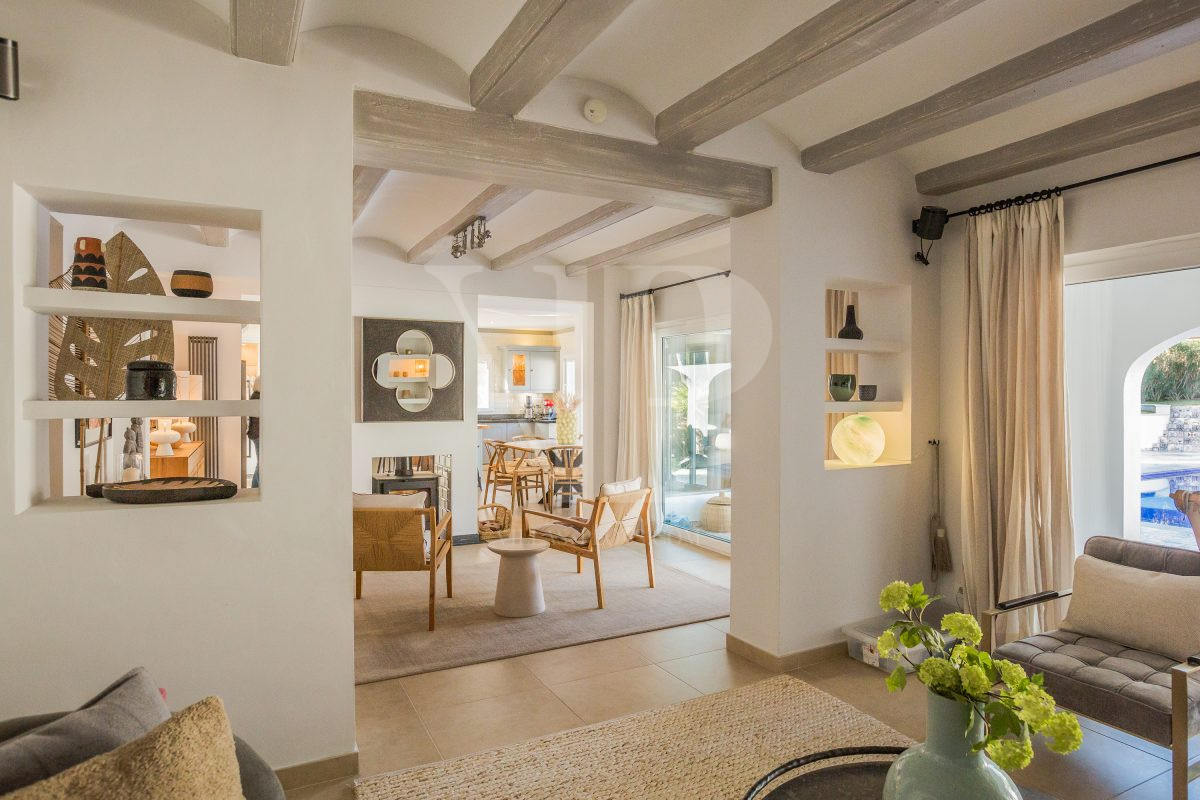 Discover refined living in this beautifully renovated and furnished 4-bedroom villa set within the prestigious La Lluca urbanisation of Jávea. Designed with sophistication in mind, the home features an elegant open-plan kitchen and luminous living areas that flow seamlessly to the outdoors. South-facing and exceptionally private, the property is bathed in sunlight from morning to evening. With 4 spacious bedrooms and 3 chic bathrooms, two en-suite, the villa offers both comfort and exclusivity. A generous private driveway accommodates up to 3 vehicles.