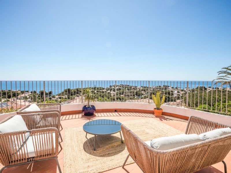 This beautifully presented south-facing villa offers spectacular, uninterrupted sea views from every room and terrace — including breathtaking 90-degree panoramas where you can watch the sunrise behind Ibiza and gaze out beyond the iconic lighthouse.