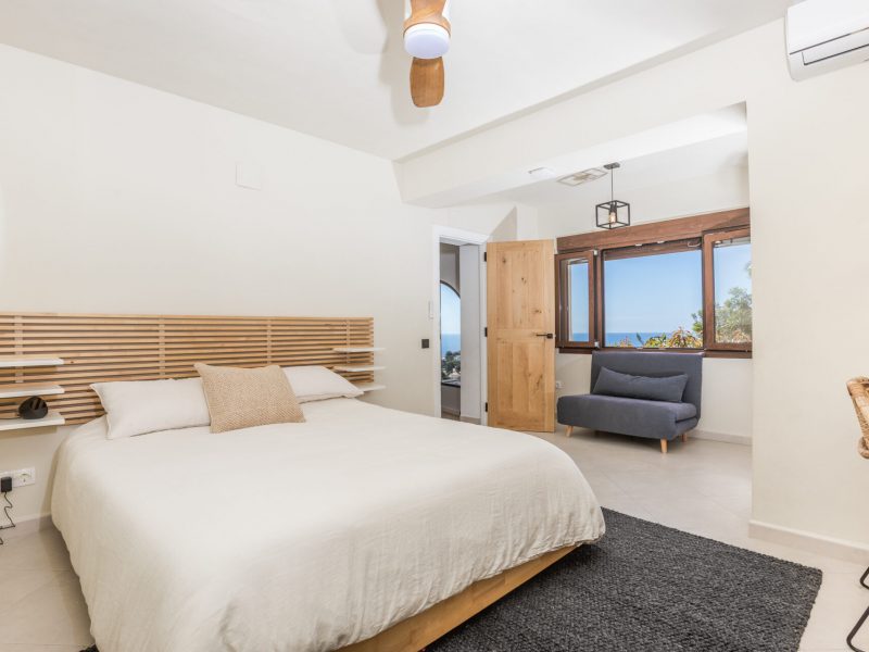 The villa offers 4 generous bedrooms, 3 bathrooms. The master suite opens onto a vast private terrace, delivering truly unforgettable views stretching across the Mediterranean.