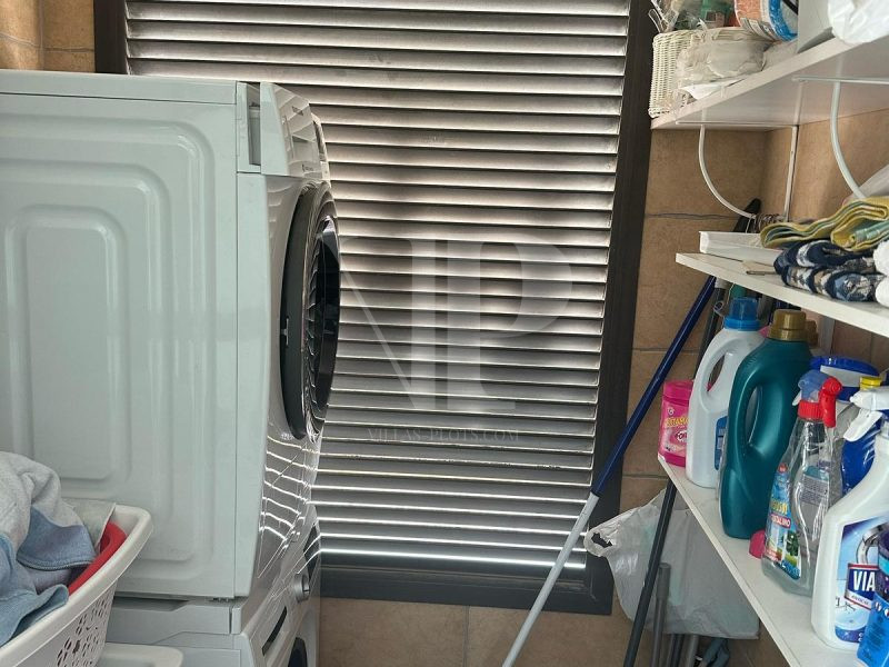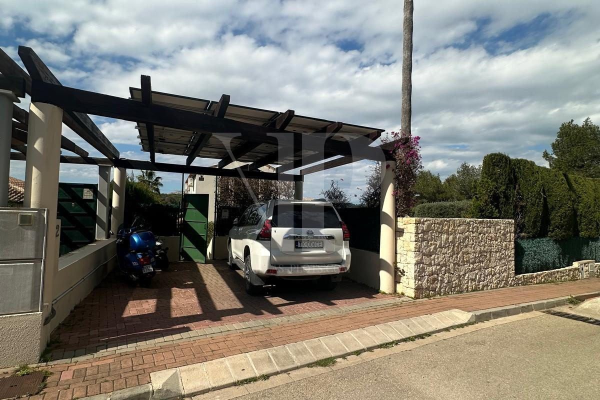 The villa includes a practical storage room and a carport with space for two vehicles. Outdoor living is enhanced by a generous 10 m x 5 m swimming pool and a lovely garden with low maintenance, perfect for enjoying the Mediterranean climate.