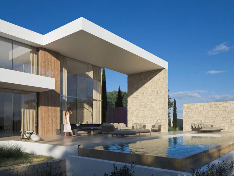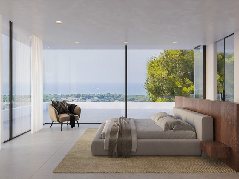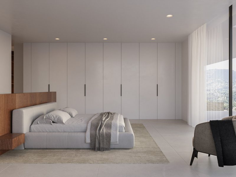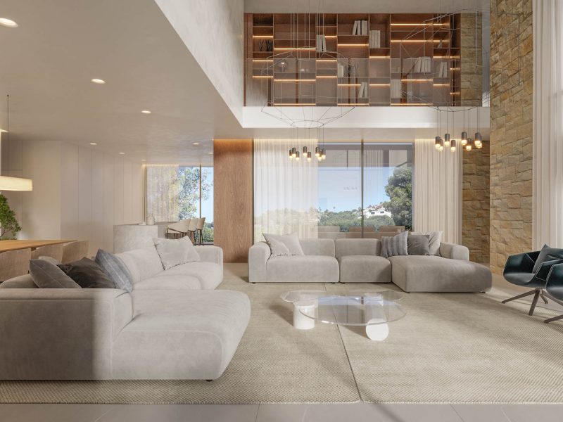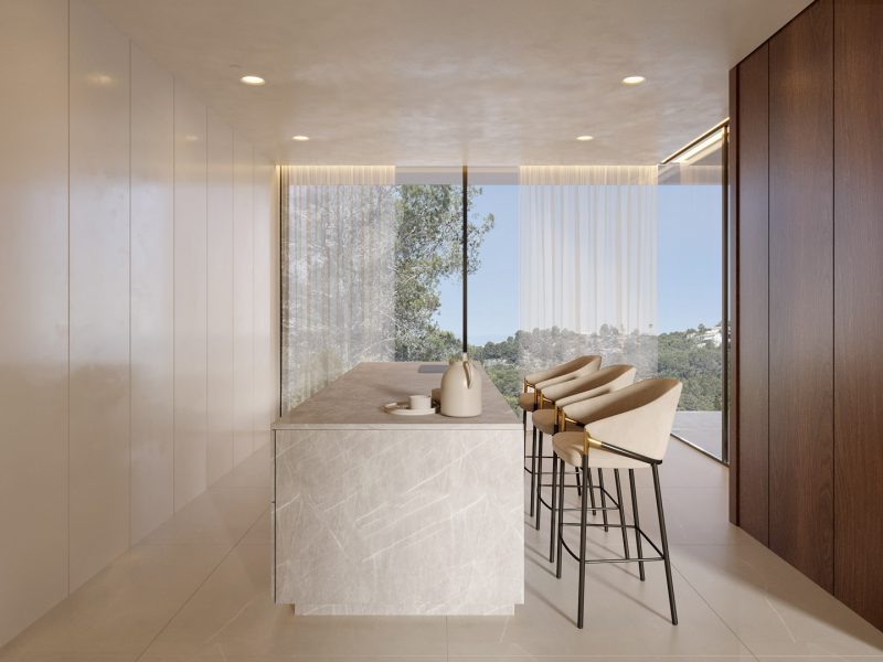 The interior has been designed with the same attention to detail as the exterior, incorporating fine materials and warm textures that provide elegance, exclusivity, and comfort. The villa also includes a kitchen equipped with the latest technologies and top-quality finishes, as well as solar panels, reinforcing its modern and sustainable character.