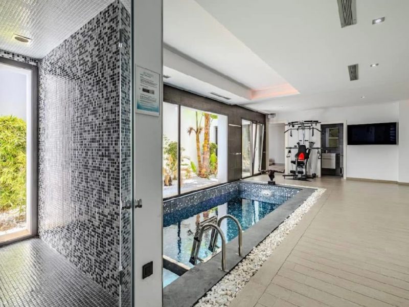 Indulge in the ultimate relaxation with your private heated indoor pool and wet sauna, and dedicated exercise room.