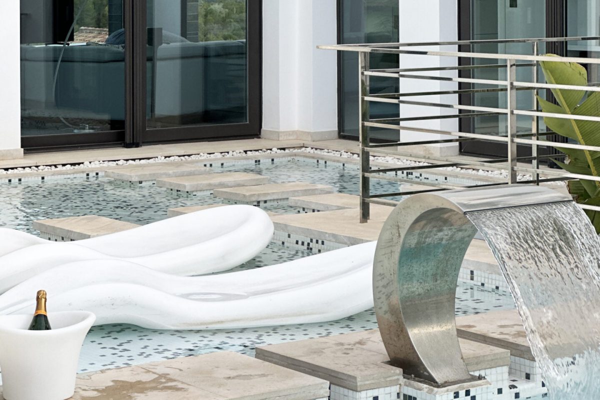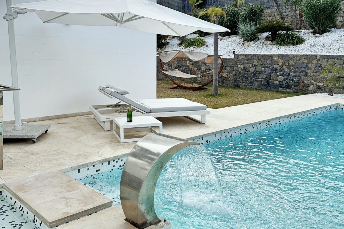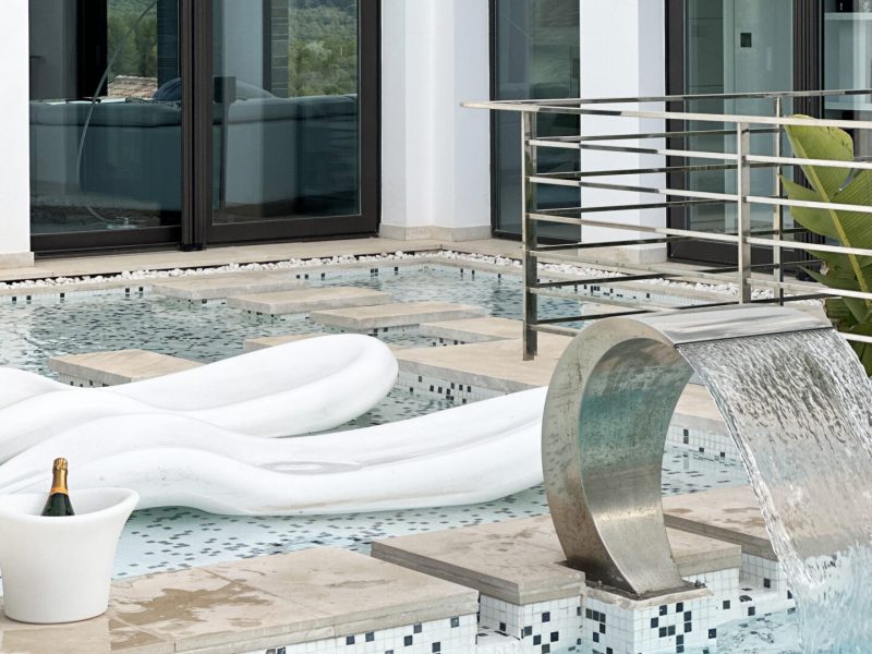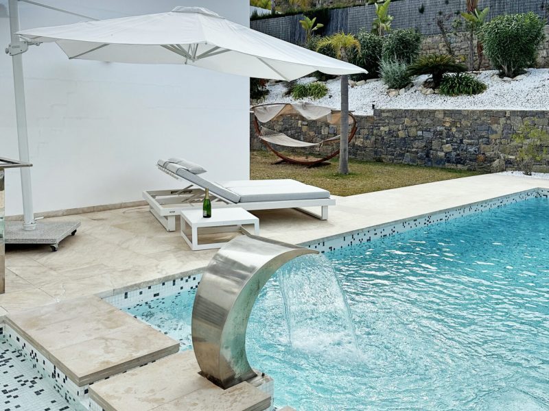 There are two additional pools outside: garden pool with fountain and shallow wade area for children to play and infinity pool with mountain and sea-view.