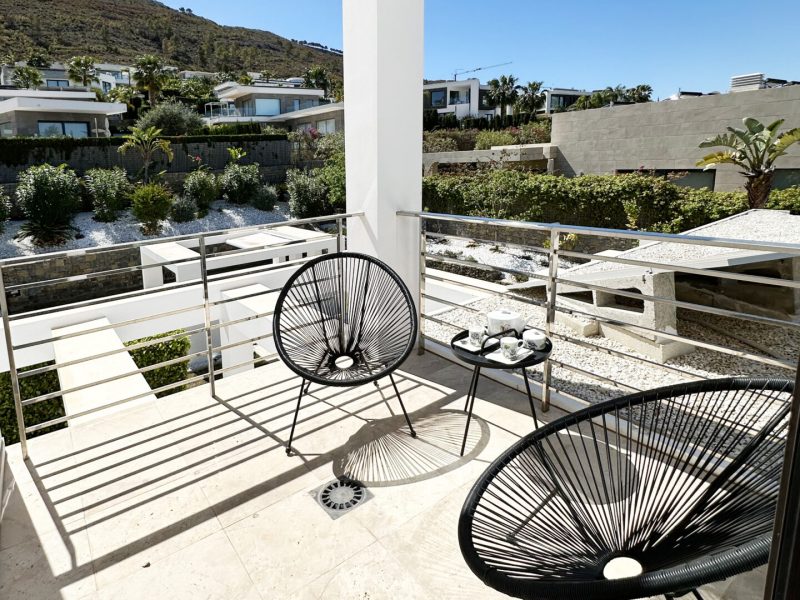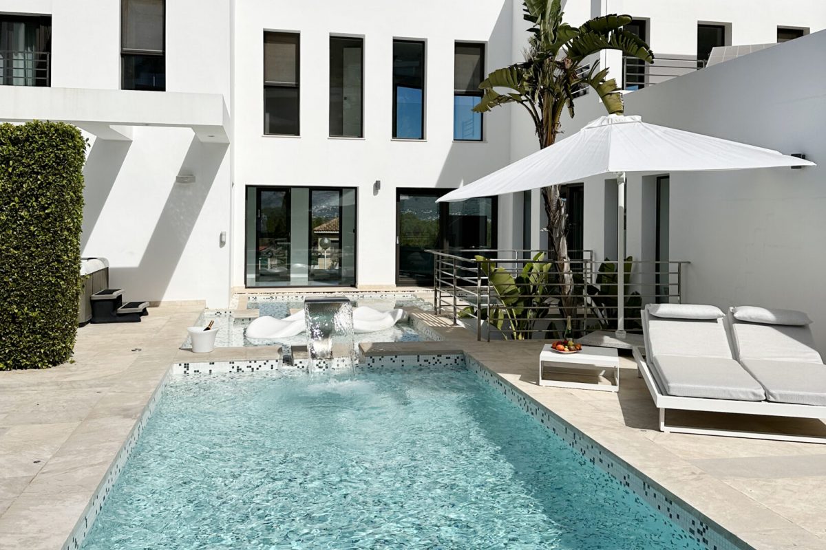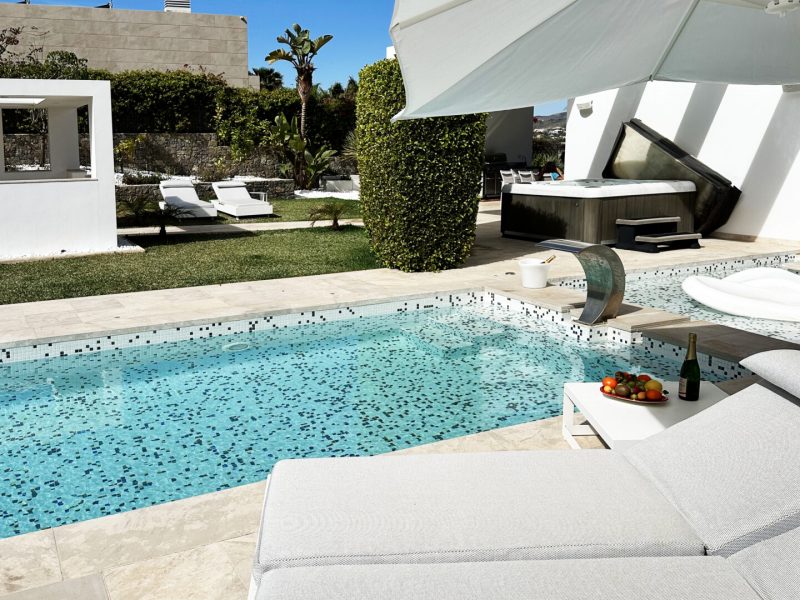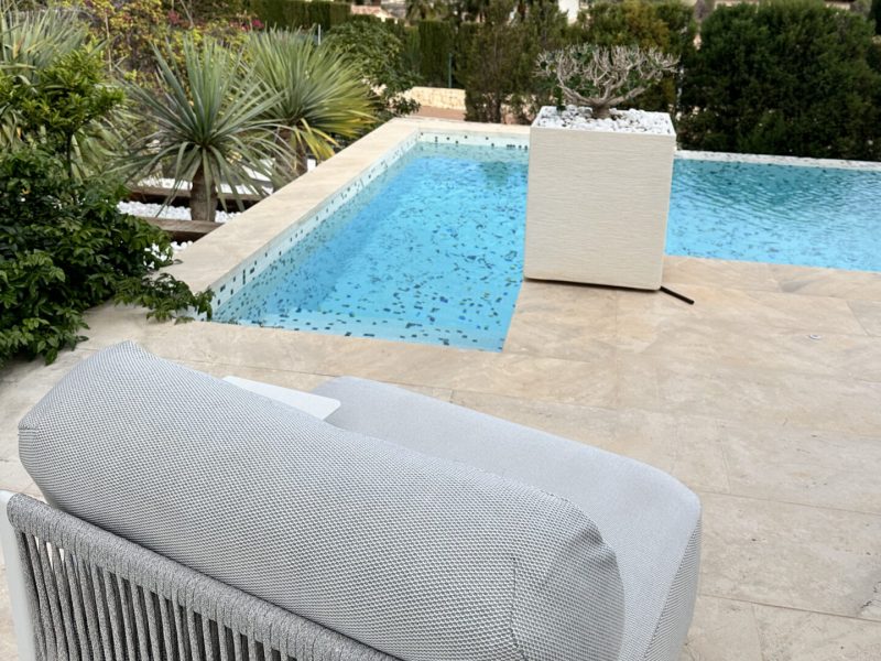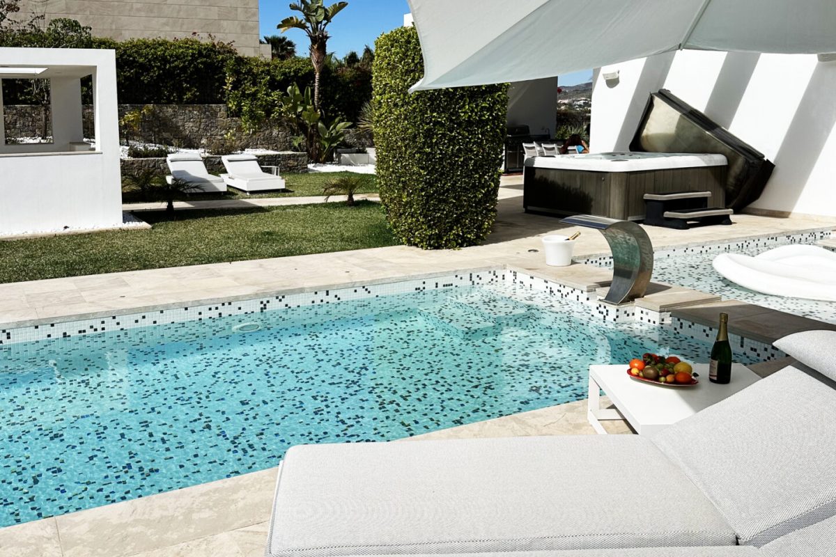 There are two additional pools outside: garden pool with fountain and shallow wade area for children to play and infinity pool with mountain and sea-view.
