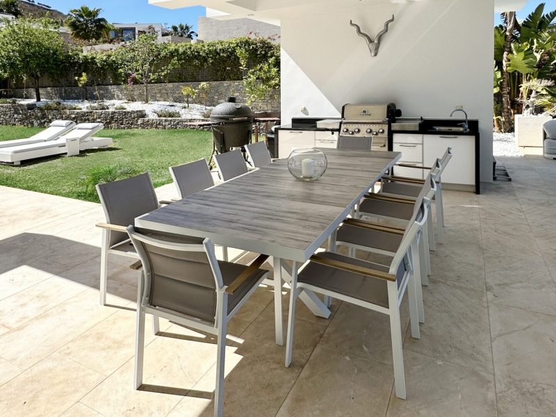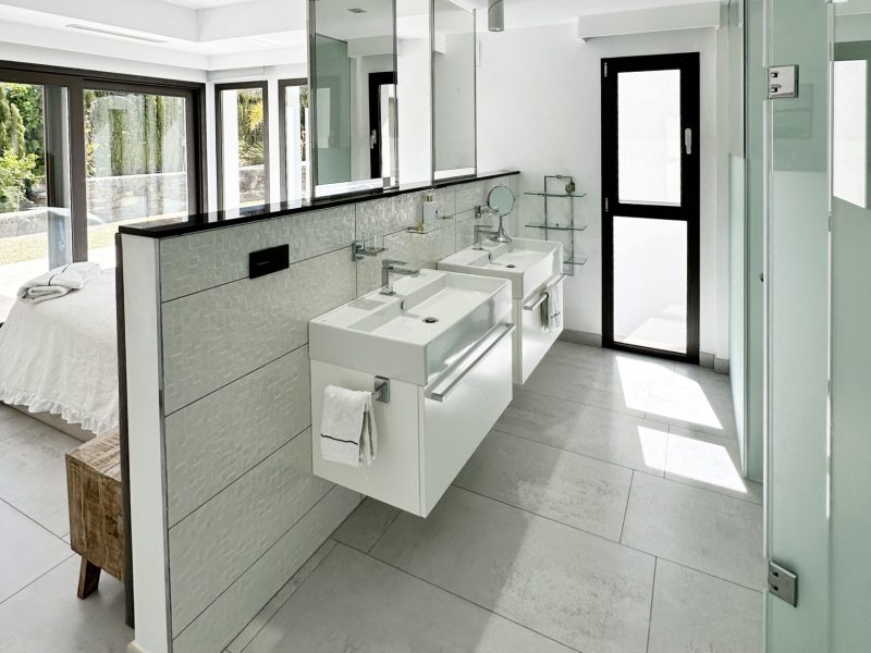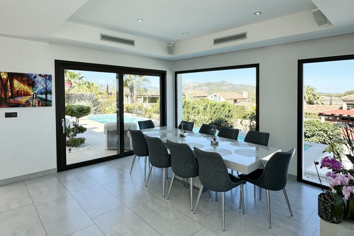 Five generously sized bedrooms, including a lavish 27 square meter primary suite, provide serene retreats. With eight opulent bathrooms, this residence ensures comfort and privacy for all. The gourmet kitchen seamlessly integrates with the dining area, perfect for both intimate family meals and grand entertaining.