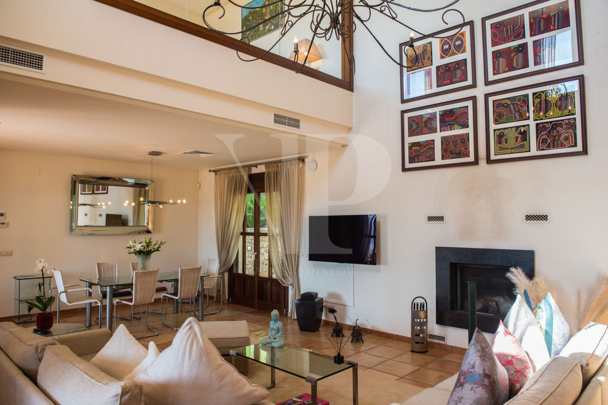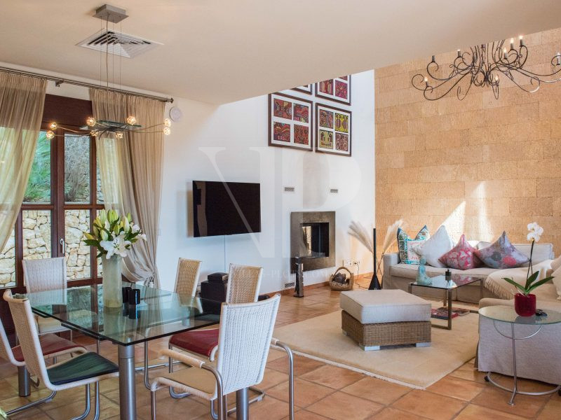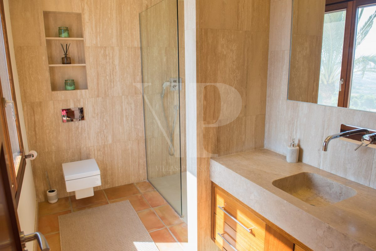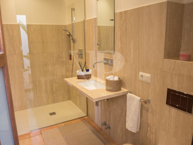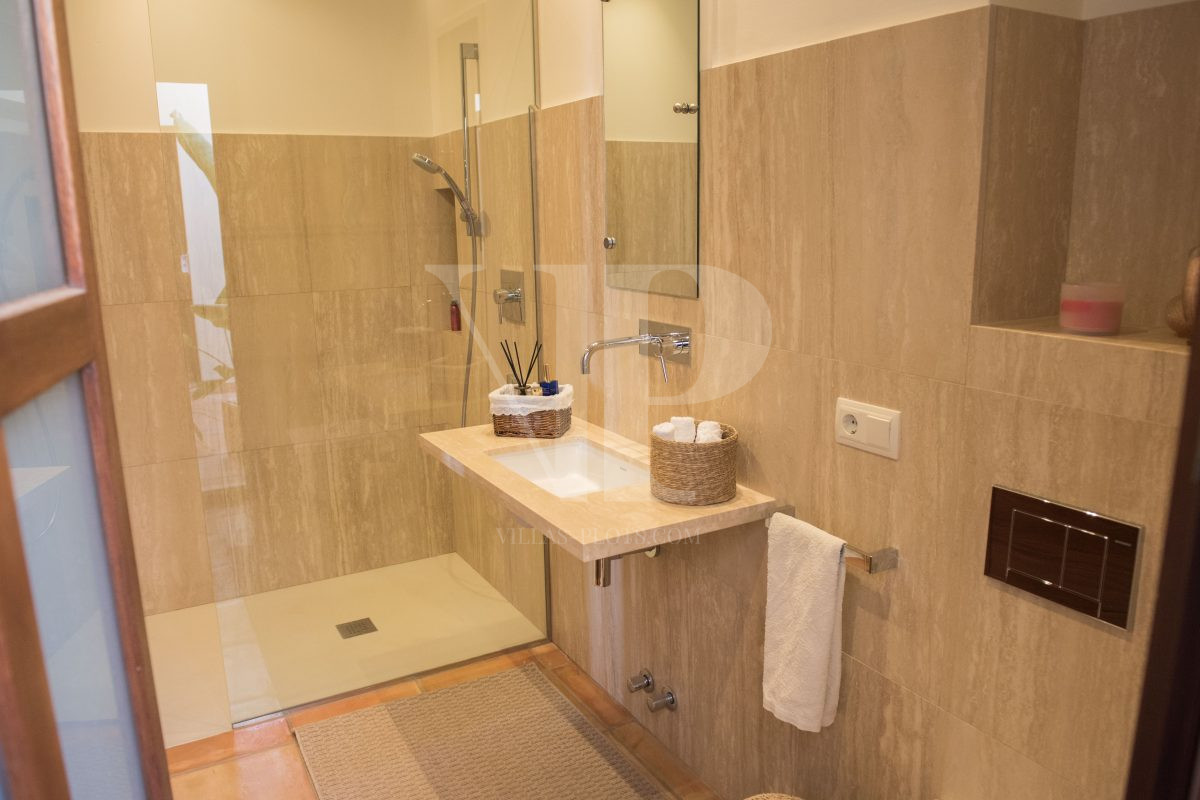 Highlights include handcrafted terracotta floors, iroko wood windows with triple glazing, bespoke ironwork by Toni Marí, LED lighting, underfloor heating and air conditioning, automated shutters, solar hot water and a 20 kW photovoltaic system with batteries. Fibre optics, alarm with video surveillance, a full-house water softener and the remarkable energy efficiency ensure both comfort and sustainability.