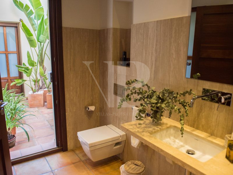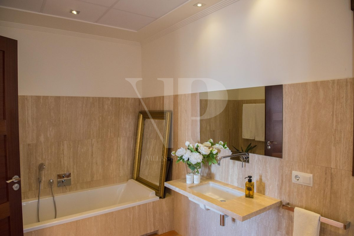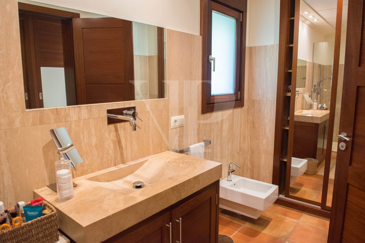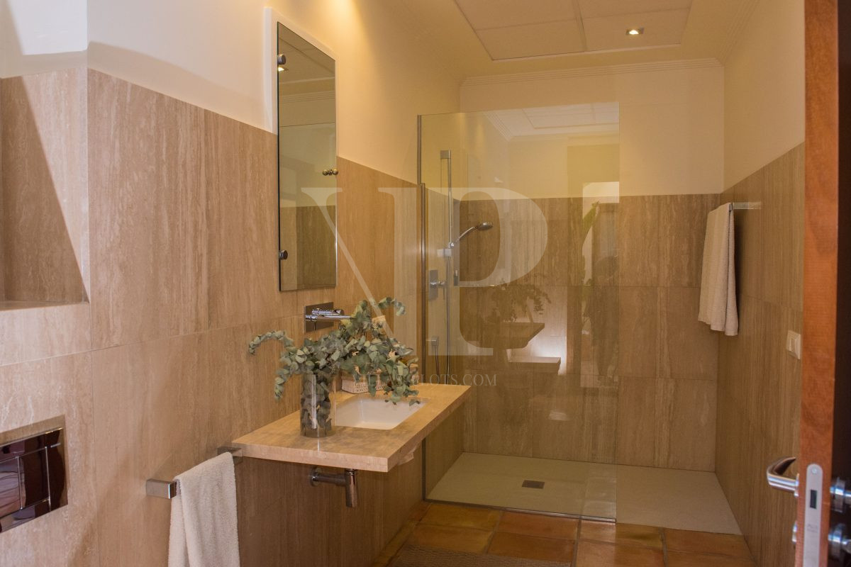 Highlights include handcrafted terracotta floors, iroko wood windows with triple glazing, bespoke ironwork by Toni Marí, LED lighting, underfloor heating and air conditioning, automated shutters, solar hot water and a 20 kW photovoltaic system with batteries. Fibre optics, alarm with video surveillance, a full-house water softener and the remarkable energy efficiency ensure both comfort and sustainability.
