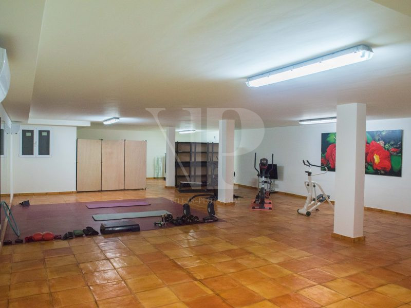The semi-basement offers a double garage, storage rooms, laundry, technical room and a 120 m² gym. The main floor boasts bright open spaces: a glazed naya that fully opens, living room with fireplace and double-height ceilings, dining area, large kitchen, four bedrooms and three bathrooms (two en suite). The upper floor is dedicated to the master suite with two bathrooms and a dressing room.