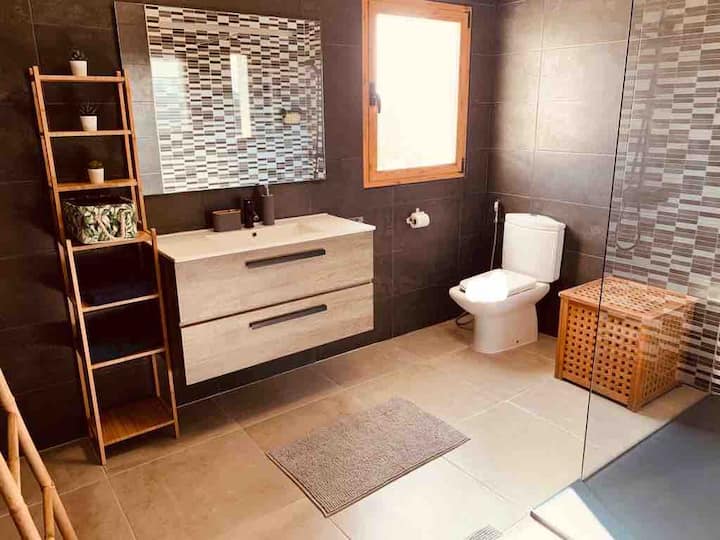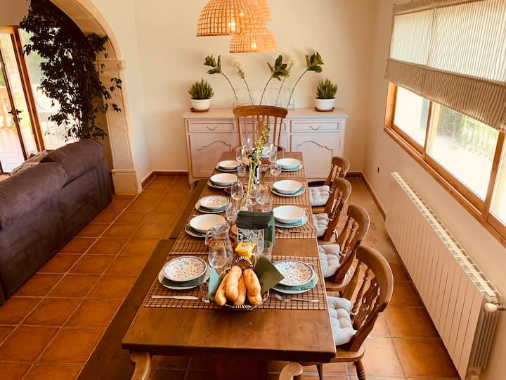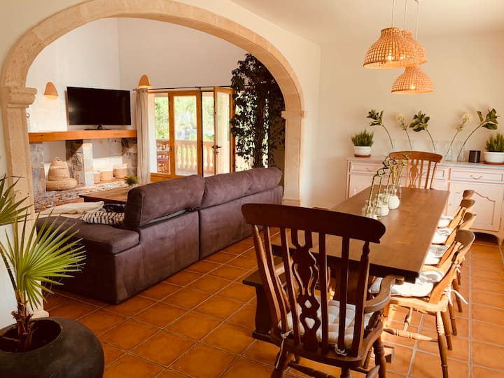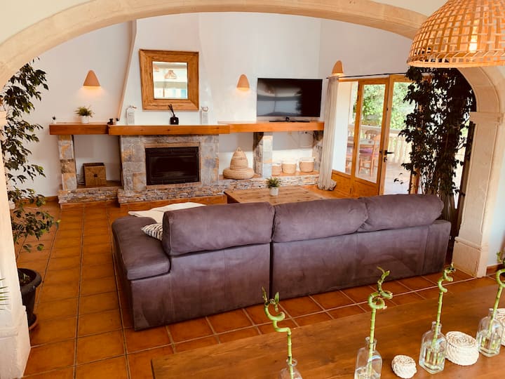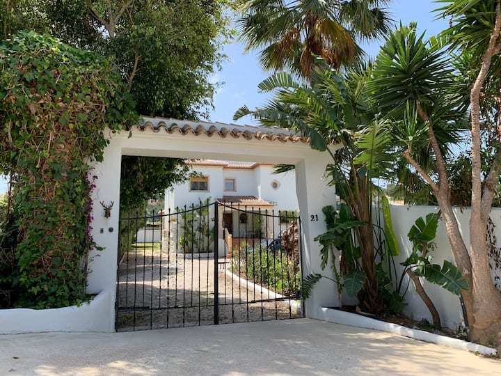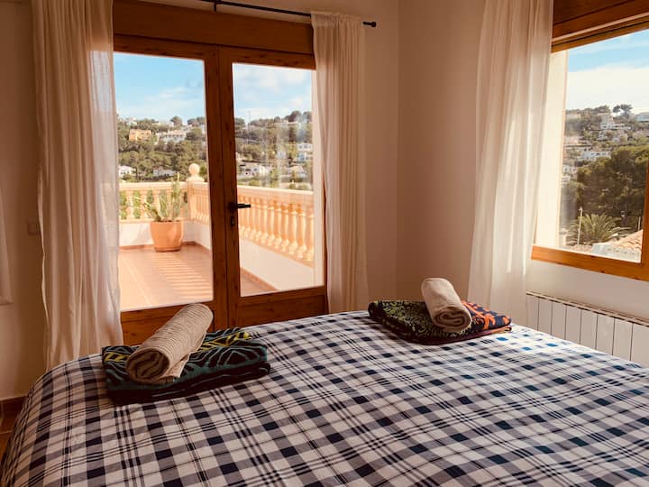 Spacious Luxery Villa of 295 m2, on a big flat plot of 1.700 m2, located in a quiet and private area of Portixol, Cap Marti in Jávea. Only 5 min from beaches of Arenal and walking distance to beautifull other bays of Javea .Enjoy the open views over the valley and the azul blue Mediterranean sea from the upper terrace.Outside is the 8m x 4m pool surrounded with sunbeds and a nice chillout Poolhouse with BBQ area with seating, table, bar and barbecue. Parking for several cars.The spaceThe villa faces south and consists of a large entrance hall; a spacious living and dining room with double height ceiling and fireplace; a very spacious fully equipped kitchen with bar, dining area and direct access to the garden; a huge master bedroom with dressing room, large ensuite shower room and a private terrace; 4 more double bedrooms; a bathroom; a shower room; a spacious naya with open terrace next door and a large roof terrace with beautiful views over the area, the Montgó and the Sea. The villa has air conditioning (hot and cold), gas central heating and double glazed aluminum windows.Familyfriendly villa with rooftop terrace. You’ll have the entire home to yourself and will only share it with other guests in your party at this Stunning, Spacious, Family Friendly Villa With Pool, Garden, A/C AND WifiA spacious American style villa perfect for families with children. The villa is a modern, well equipped villa with Air conditioning in each bedroom (installed in 2019) & a large lawned rear garden and a private pool area at the front as well as shaded naya and rooftop terrace with spectacular panoramic views.In 2016 a summer house and bbq area was added (with a new built in gas barbecue at the rear) to the front of the house, so there is now a lovely shaded space to dine/relax in around the pool. The villa boasts five large bedrooms and three bath/shower rooms. A large naya overlooks the rear garden and is the perfect spot for al fresco family dining. This is in addition to the front garden and pool area with summer house and bbq area. There is also a terrace and a roof terrace offering superb panoramic views of the Sea, Montgo mountain and surrounding hillside.The property is a 5 min drive to the main sandy Arenal beach and is in a peaceful area and fully enclosed with off street parking for several cars. WIFI Satellite (English and Spanish) TV Office Area Children’s play area OutsideTable Tennis Toys, kids and adults books & games all provided. Rooms open to patios. Kitchens offer refrigerators, stovetops, microwaves, and separate dining areas.Bathrooms include bathtubs or showers, bidets, and hair dryers. Televisions come with satellite channels and DVD players. Additionally, rooms include coffee/tea makers and irons/ironing boards.