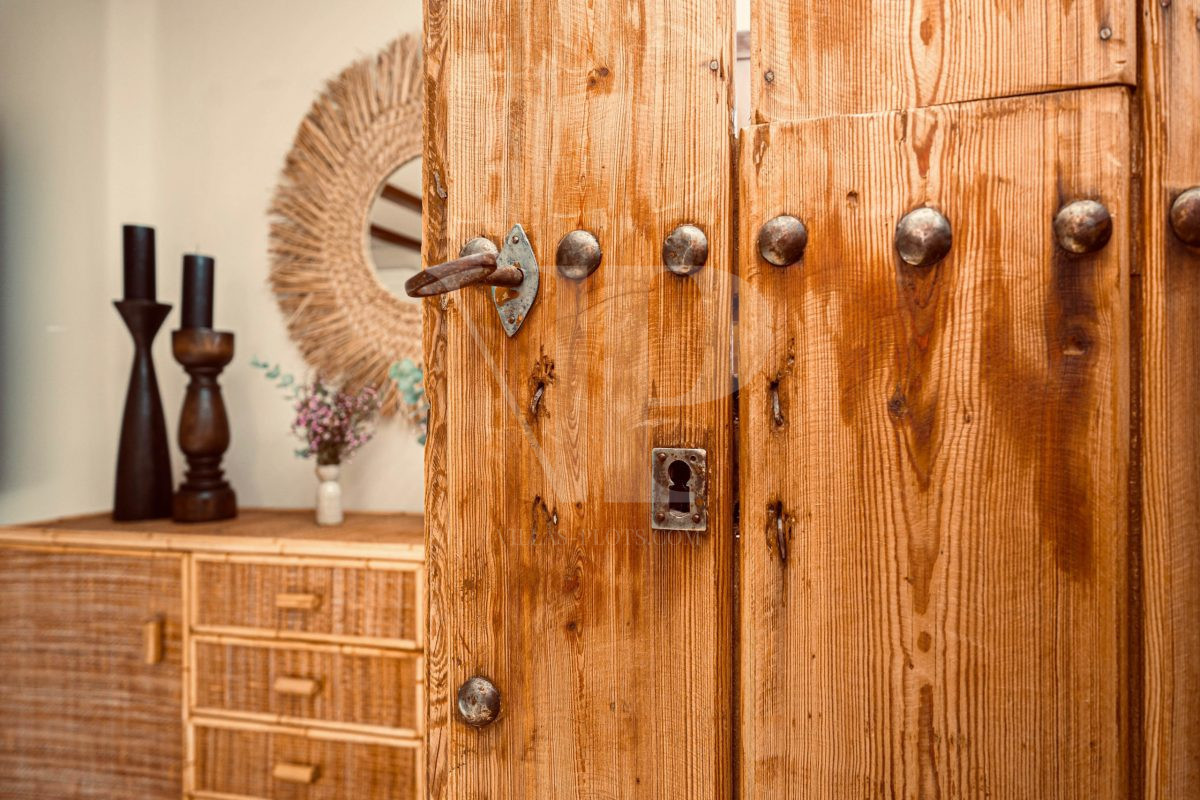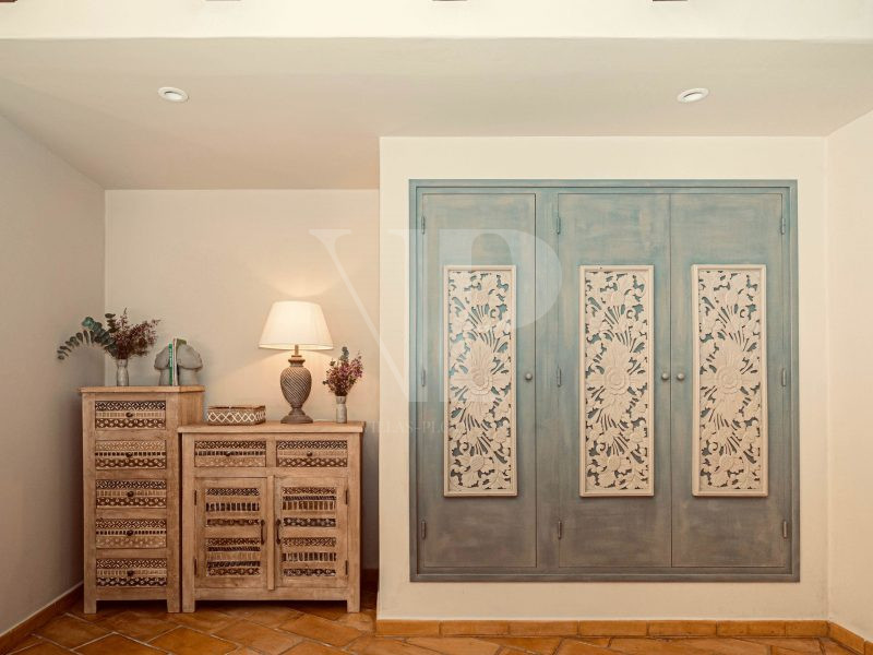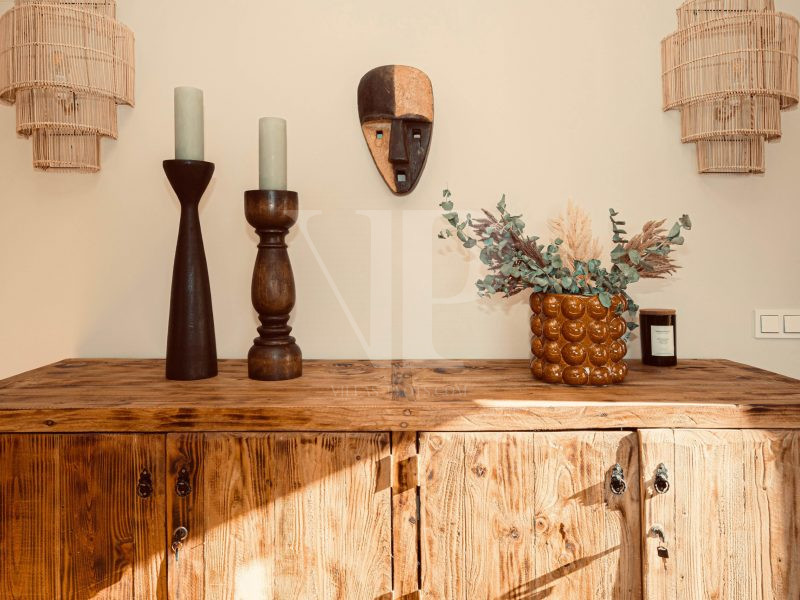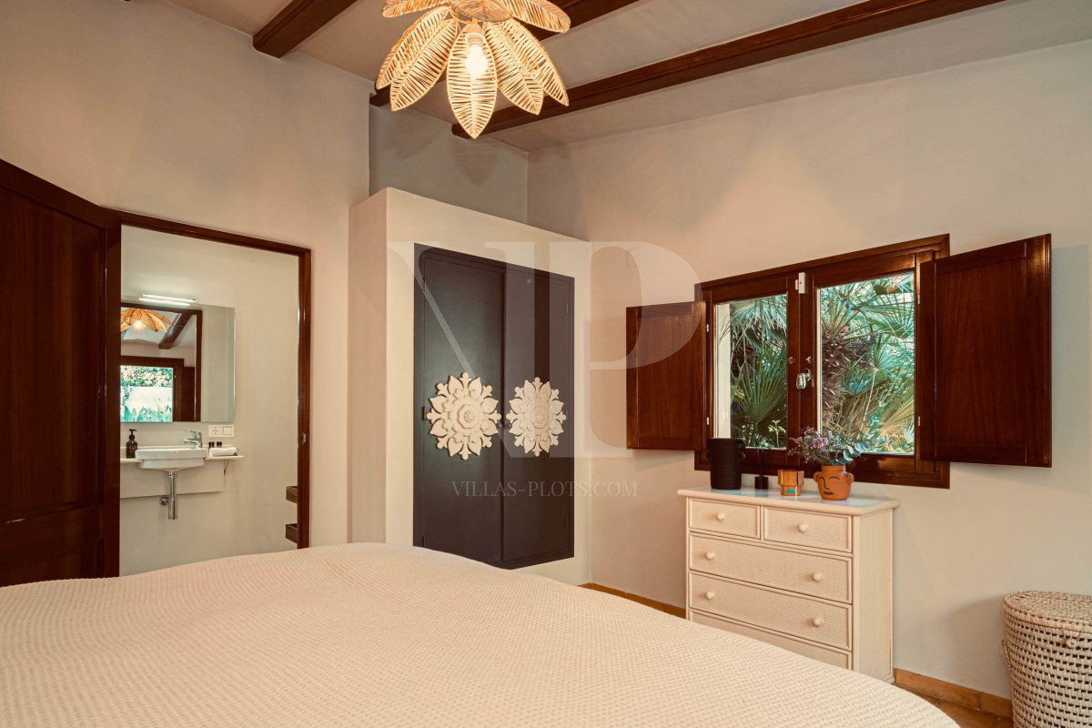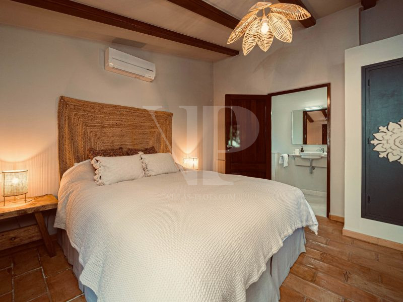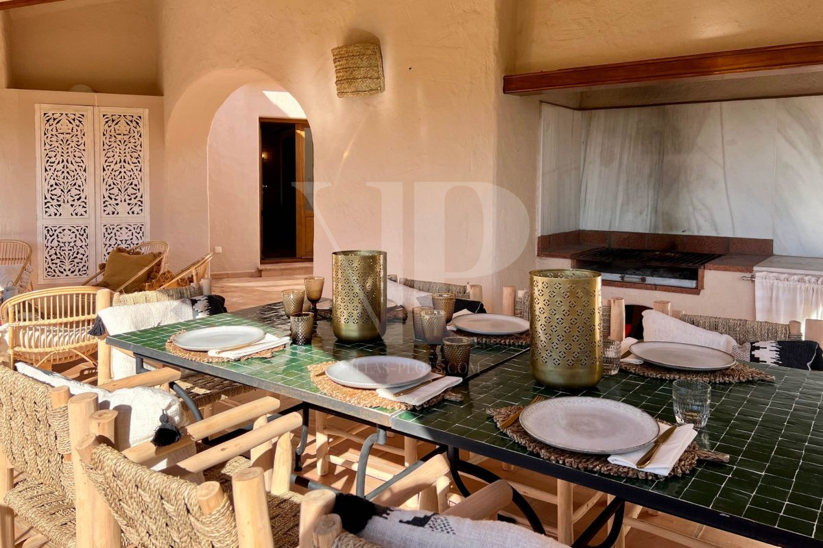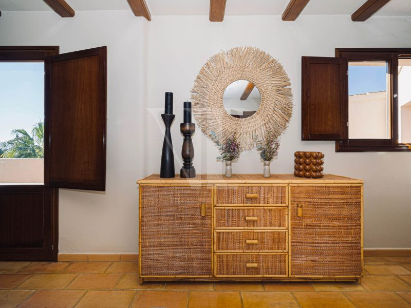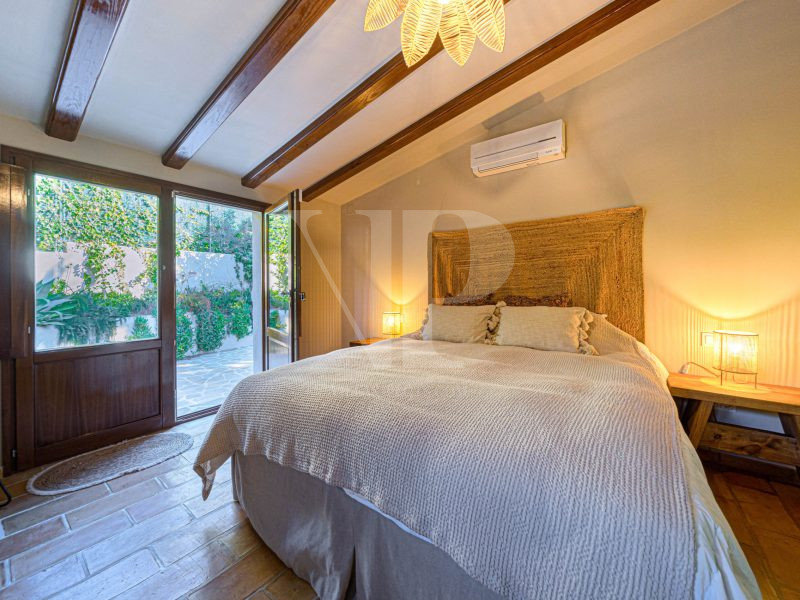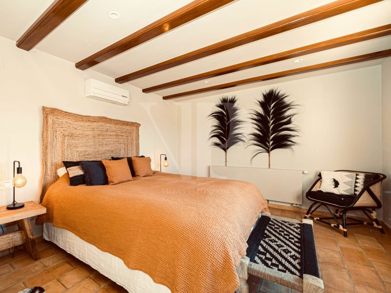 Through a spacious entrance hall you enter a bright living and dining area with an adjacent open-plan fully equipped kitchen. This level also features a bedroom with en-suite bathroom, a guest toilet and a separate laundry room. In addition, there is an extra bedroom with private access and its own bathroom, ideal for guests. From the living area there is a direct access to a charming interior patio and a large traditional naya with a lounge and an outdoor kitchen.