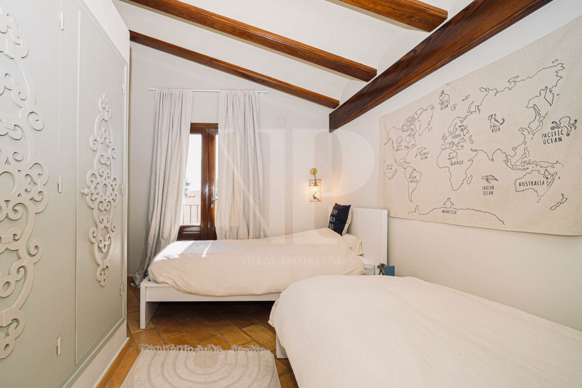 The upper floor houses the generous master suite with private bathroom, dressing area, an additional room that can be used as an office, and a private terrace with open views. On the same level there is another bedroom with en-suite bathroom and independent access, enhancing the versatility of the property.