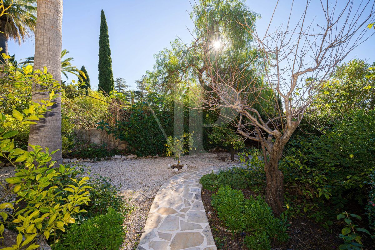 The outdoor area is a true Mediterranean retreat, offering several south-facing terraces, both sunny and shaded seating areas, and a beautifully landscaped mature Mediterranean garden with automatic irrigation. The private 10 x 5 metre swimming pool is centrally located in the garden and surrounded by cypress hedges ensuring complete privacy. A separate outdoor storage room completes the exterior spaces.