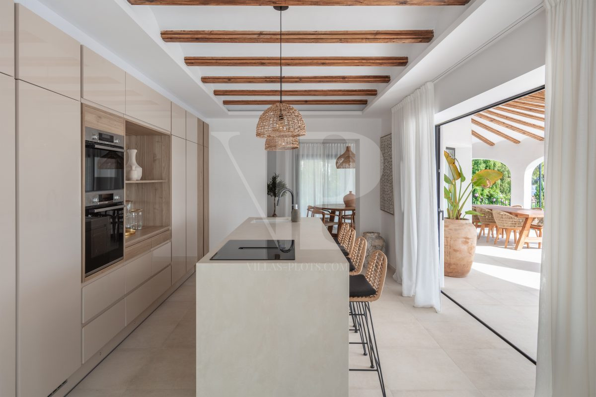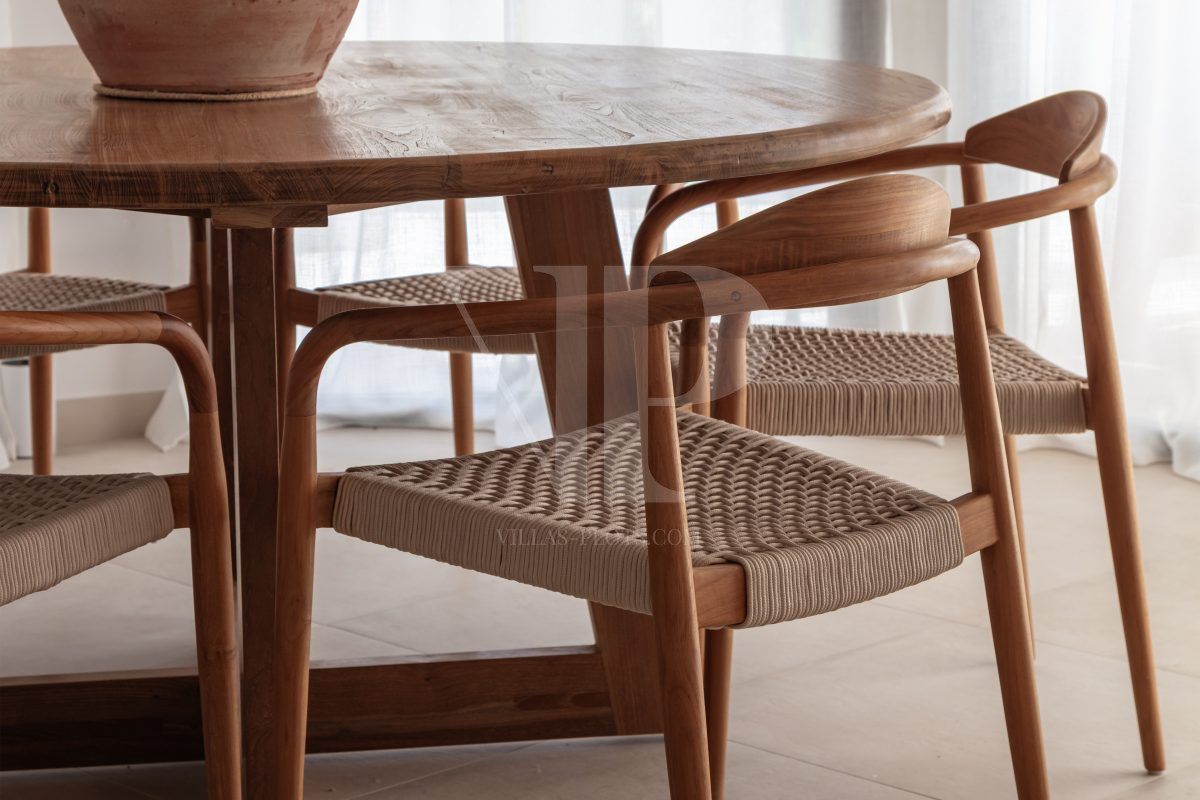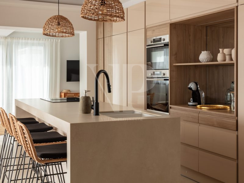 This exceptional villa represents an unparalleled retreat for those seeking luxury and serenity in an idyllic environment. Upon arrival, one is welcomed by bright, expansive interiors where every detail has been meticulously designed to ensure the highest level of comfort. The open-plan kitchen integrates seamlessly with the living room, creating an ideal space for both social gatherings and daily family life.