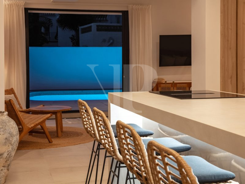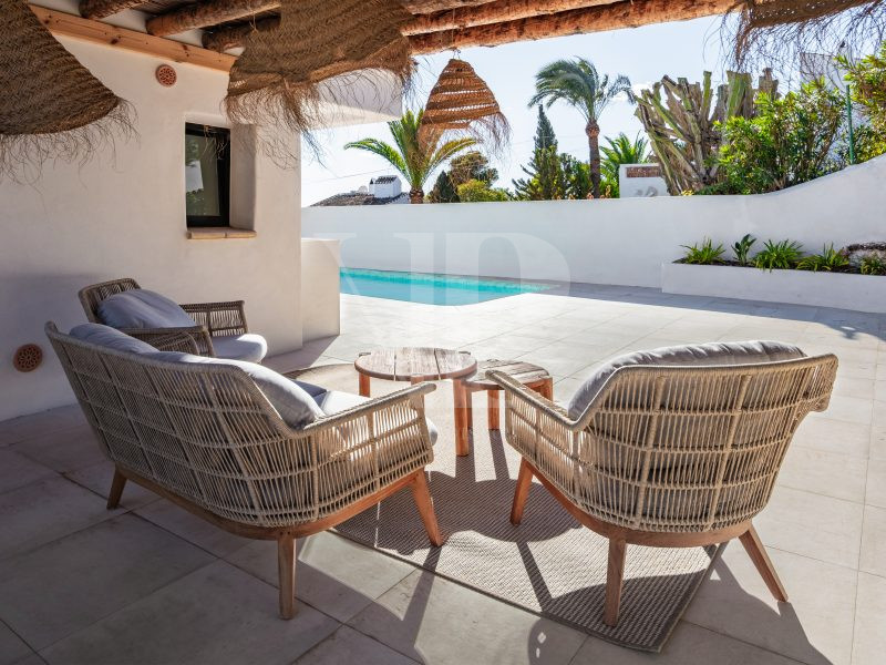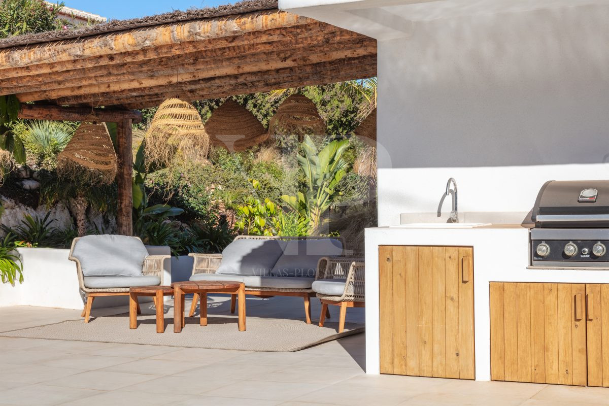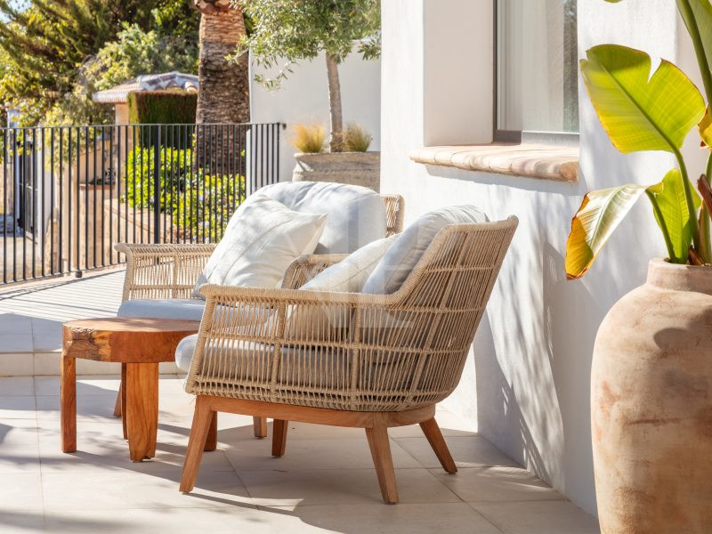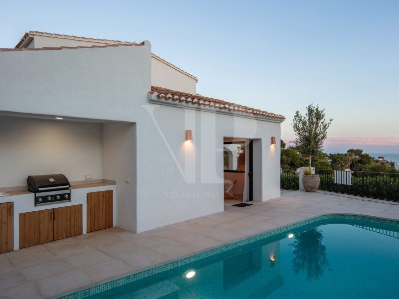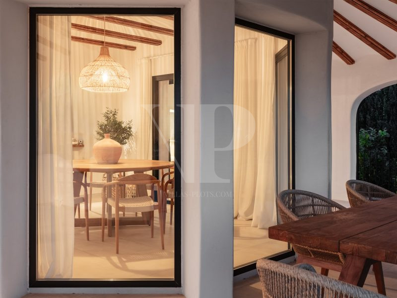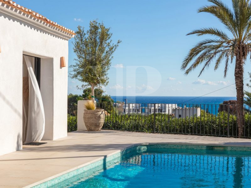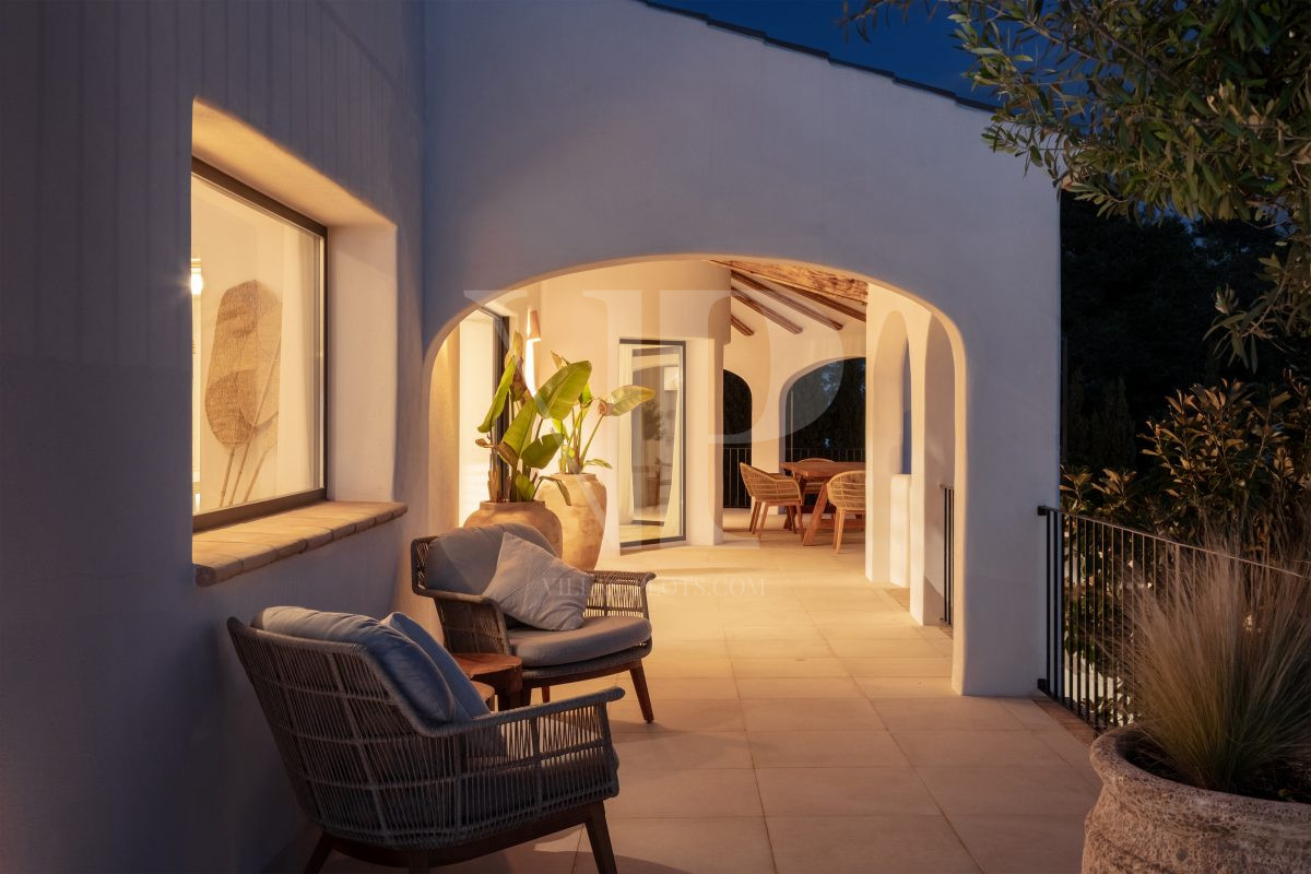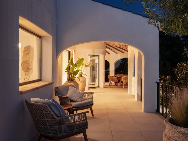 The exquisitely landscaped garden, adorned with lush vegetation, ensures privacy and evokes the sensation of being immersed in nature. This property presents a rare opportunity to reside in an earthly paradise where every day evokes the feeling of a luxurious escape. Discover your new home in Granadella, Jávea.