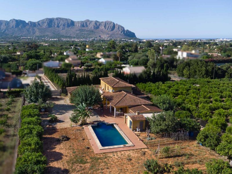 The home, with views of the majestic Segaria, is divided into spacious, bright, and inviting rooms. The living-dining room, dominated by a wood-burning fireplace, invites family gatherings and cozy evenings. The fully equipped separate kitchen opens onto a large terrace, ideal for enjoying meals al fresco. The living area features six bedrooms, three of them with en-suite bathrooms, as well as four full bathrooms, with the possibility of further expanding the space with additional rooms.